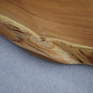 Kitchen board made of Robinia Acacia wood 20 mm thick, oval shape, live edge, soaked with natural linseed oil.