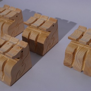 Carved corner corbels made of spruce, decorative seahorse motif, ready for finishing, dimensions 11 x 11 x 11 cm.