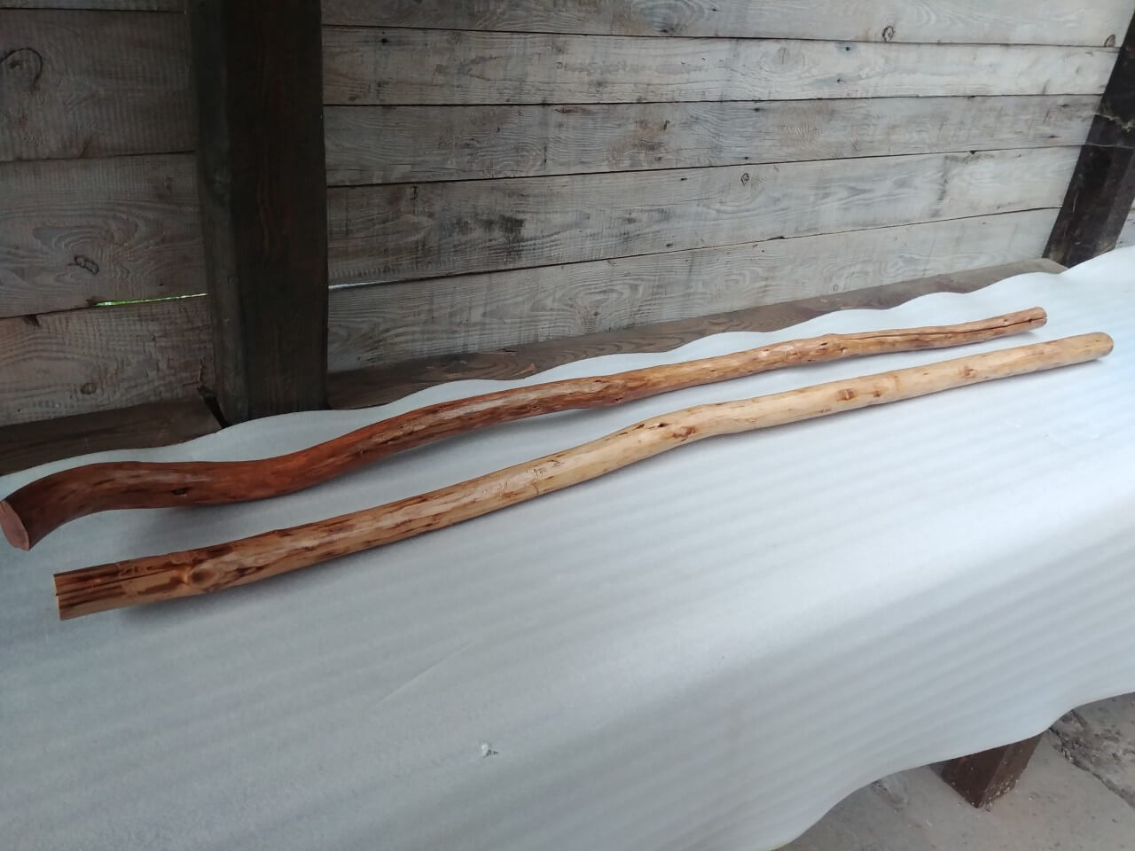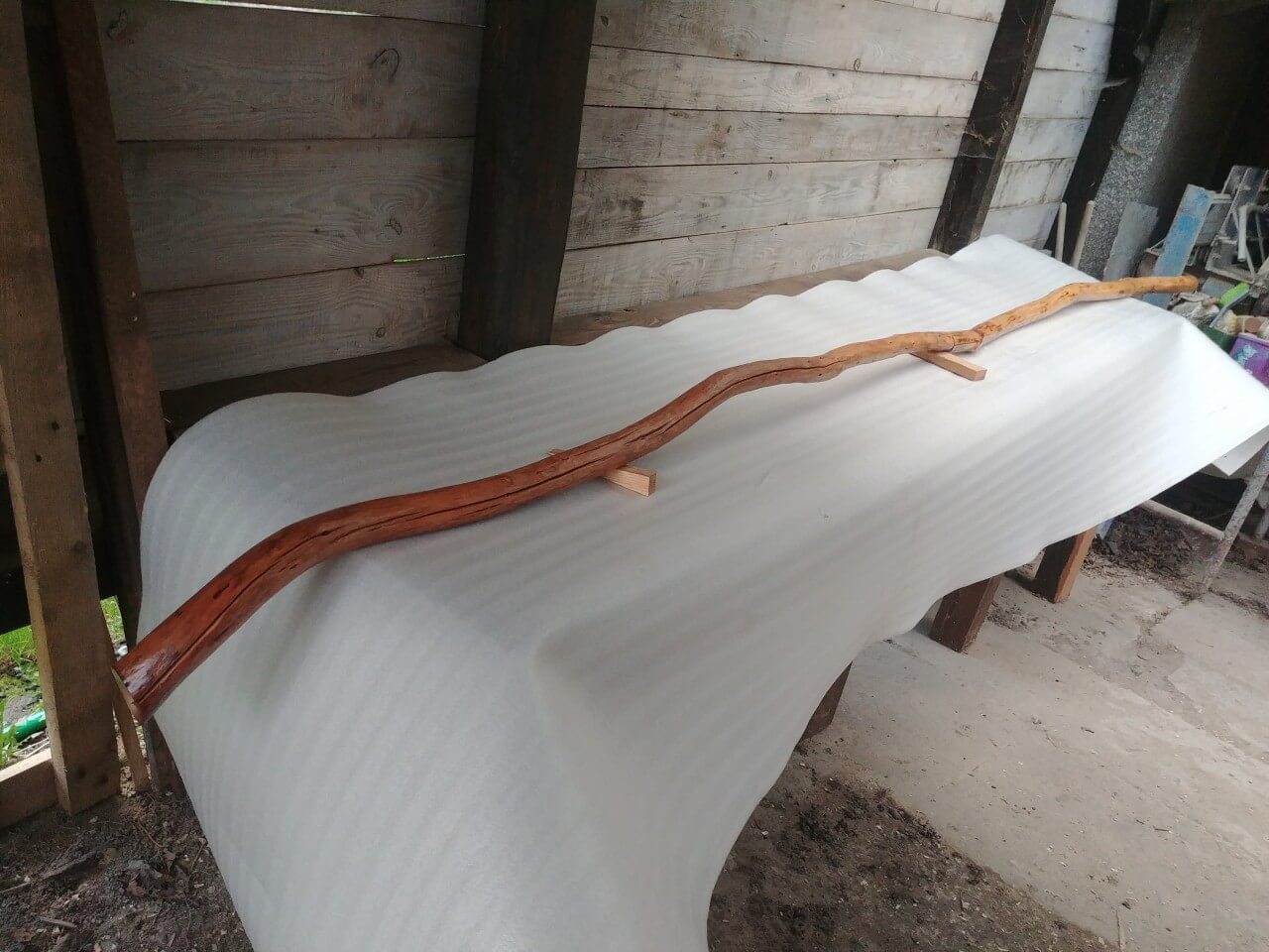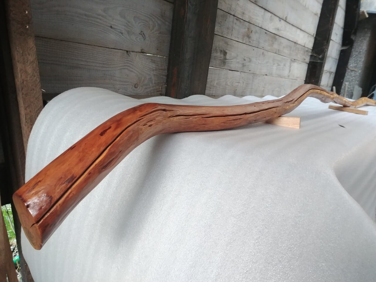 Handrails nuggets from young plum trees, natural shape, lightly brushed surface, lacquered