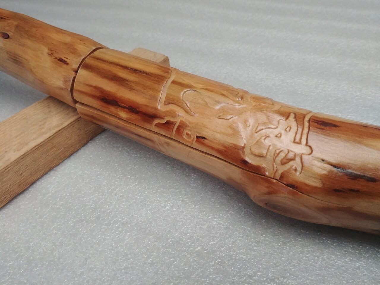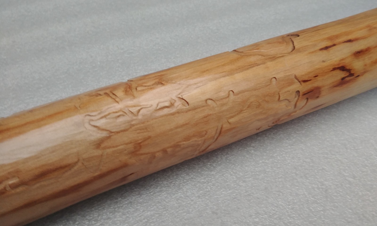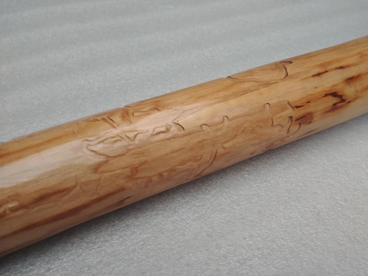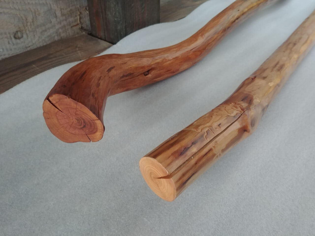 Handrails nuggets from young plum trees, natural shape, lightly brushed surface, lacquered