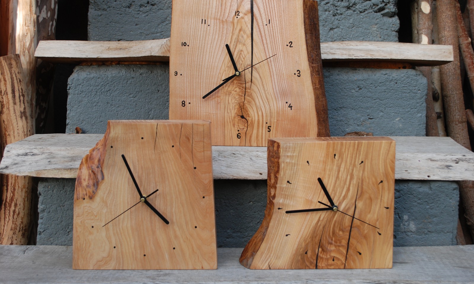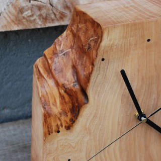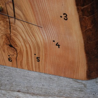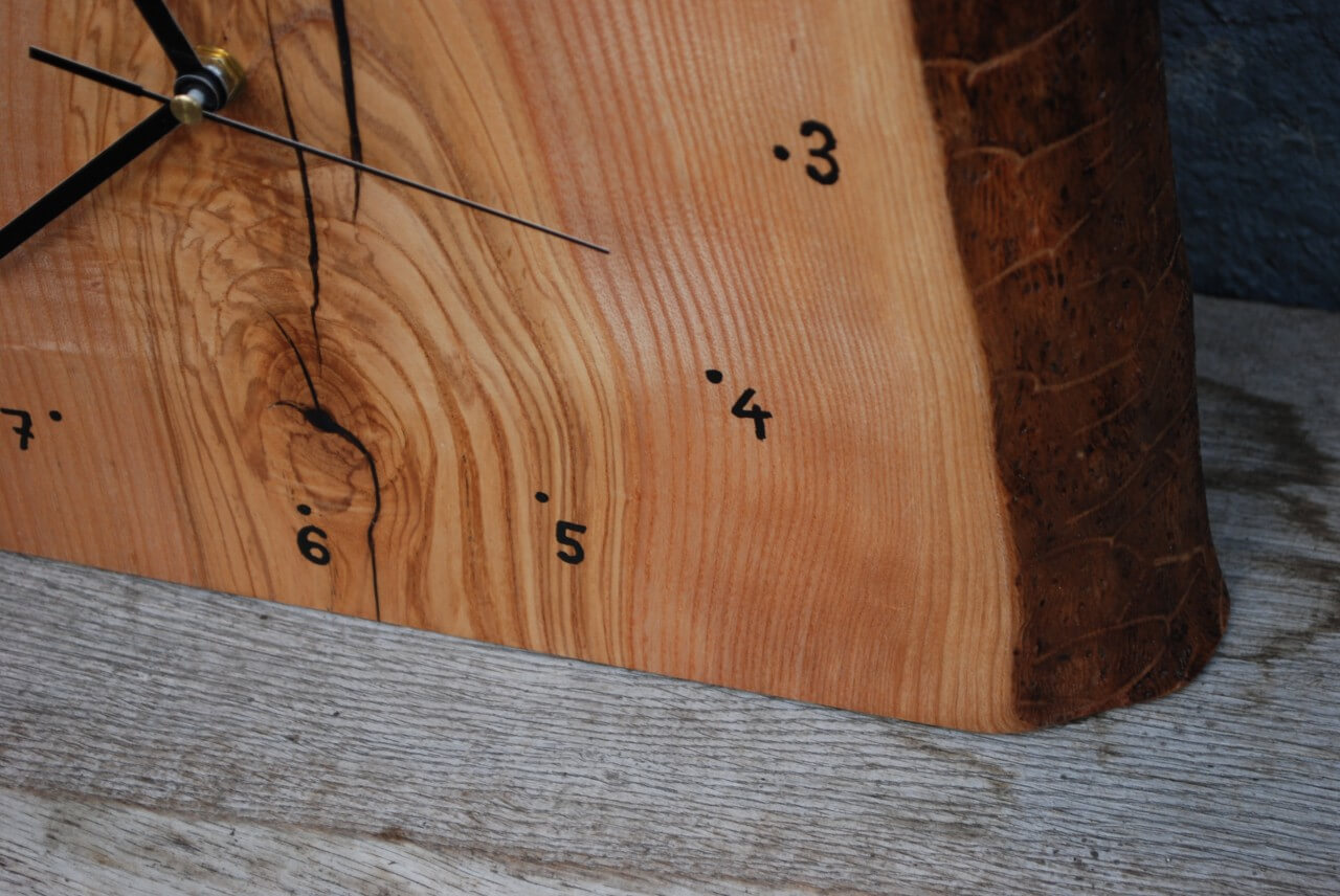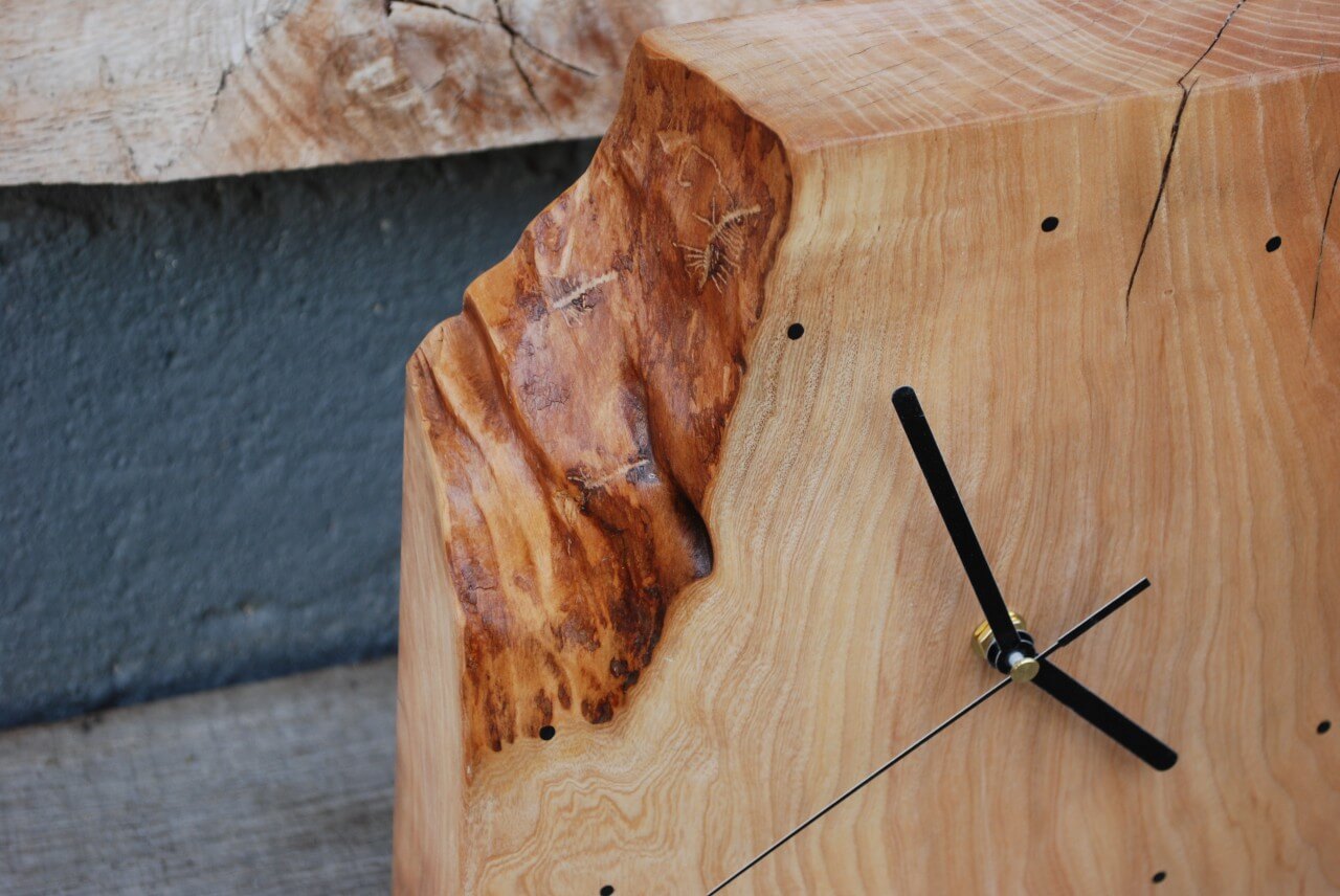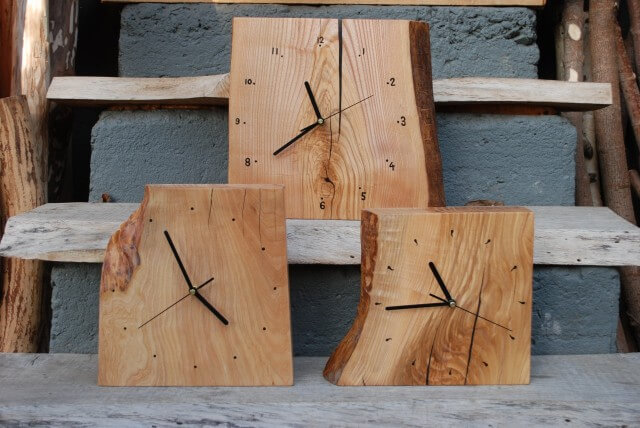 Standing clocks made on the basis of an ash block 6cm thick, dimensions between 30-40cm, matt lacquer.
