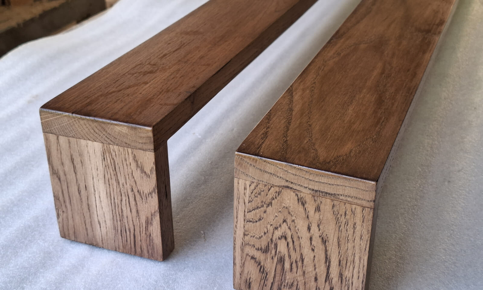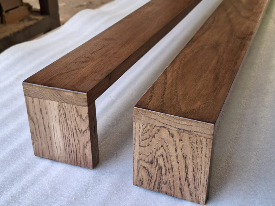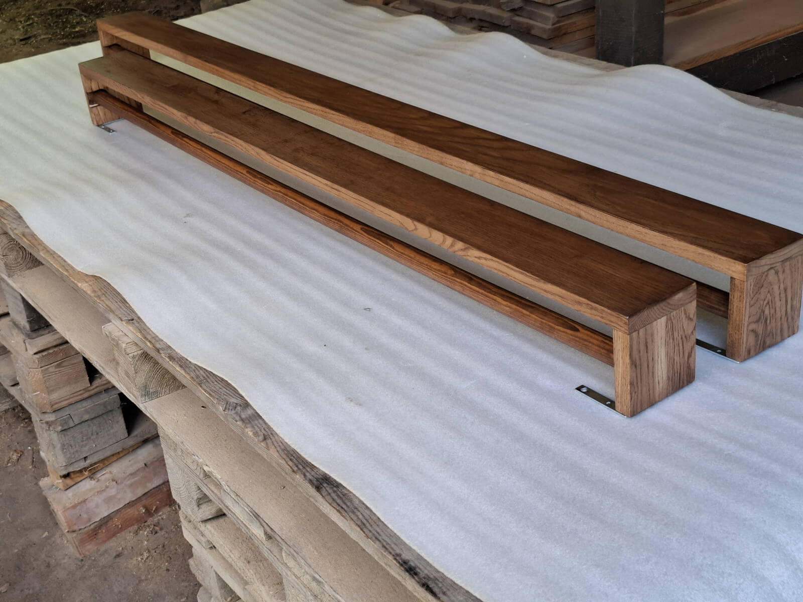 Traditional curtain rods made of Oak, single row, for rods, straight side profile, natural color, dark brown, oiled. Lengths, and finishes on request.