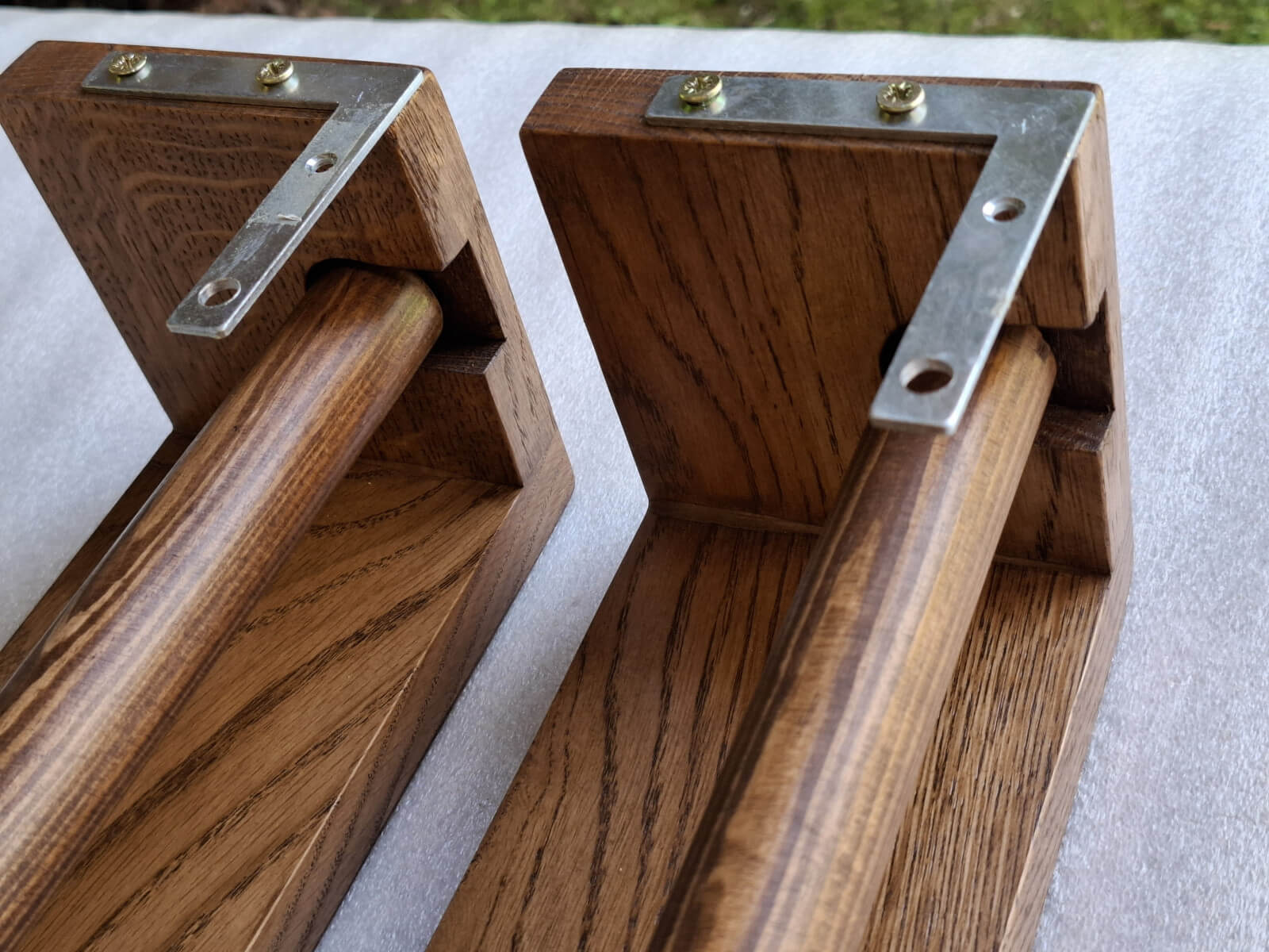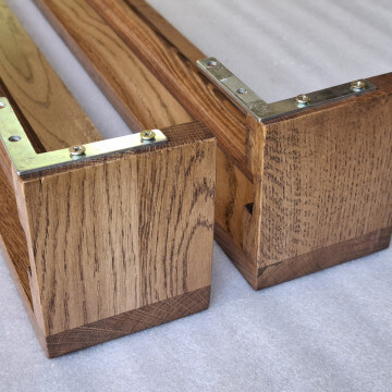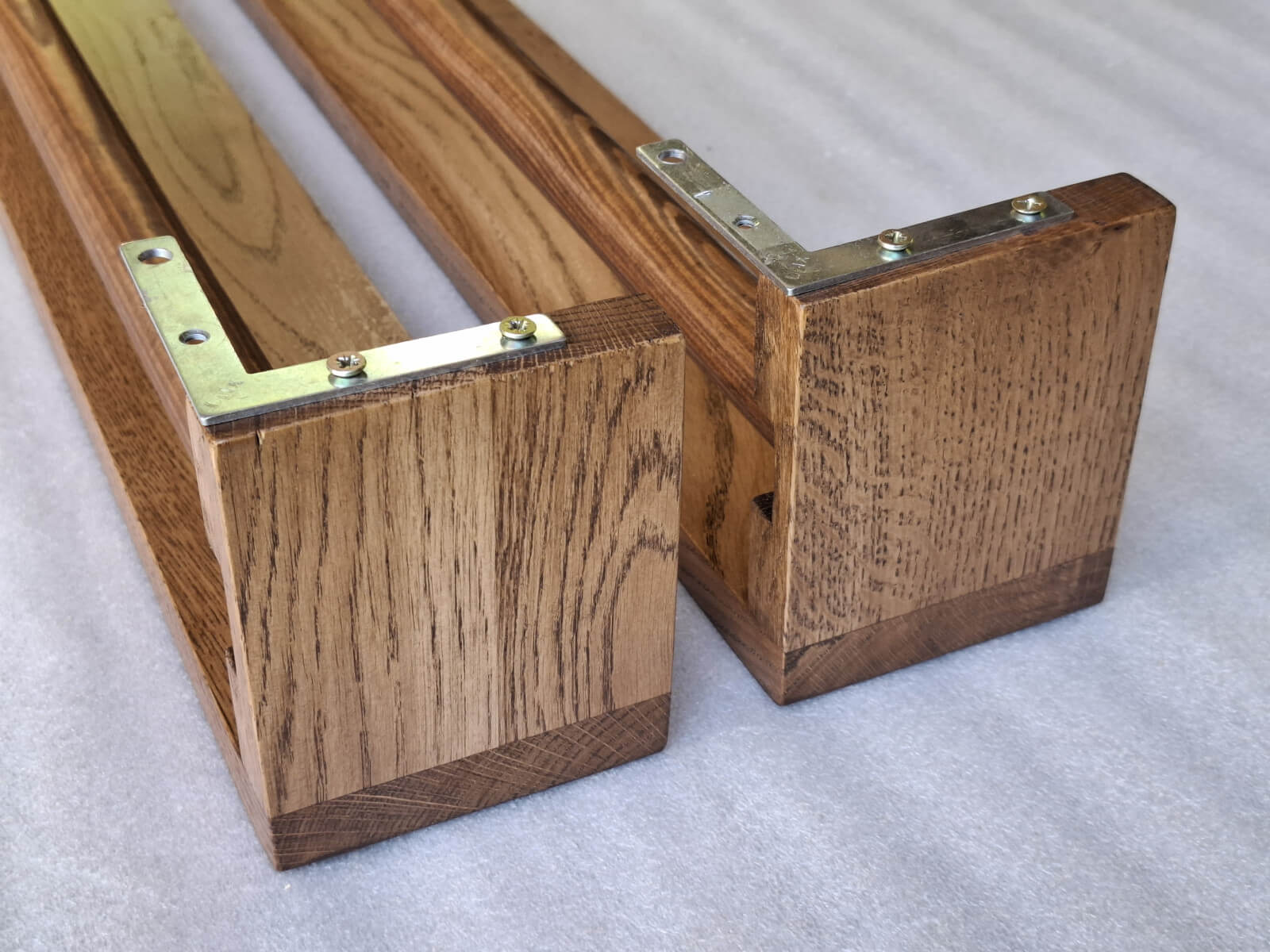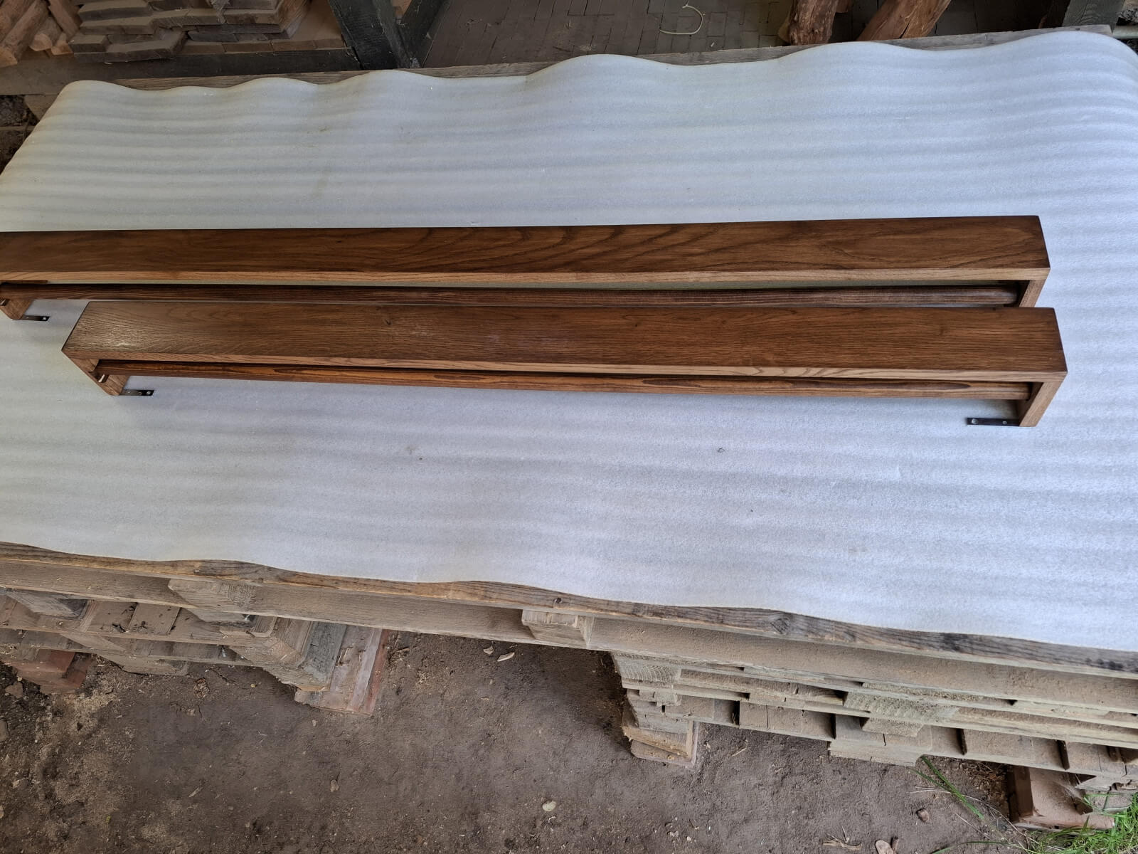 Traditional curtain rods made of Oak, single row, for rods, straight side profile, natural color, dark brown, oiled. Lengths, and finishes on request.
