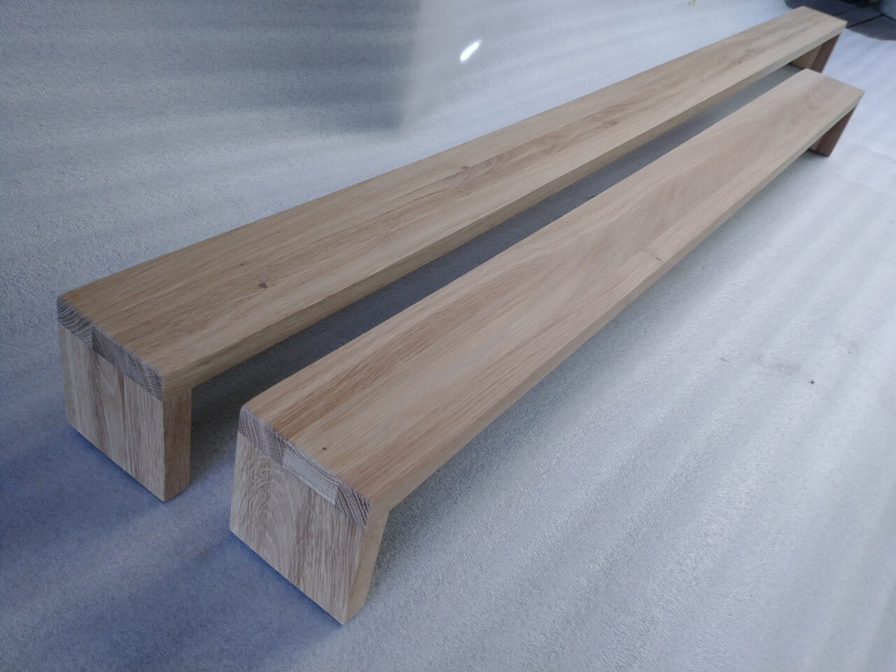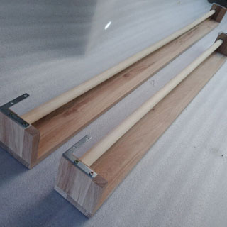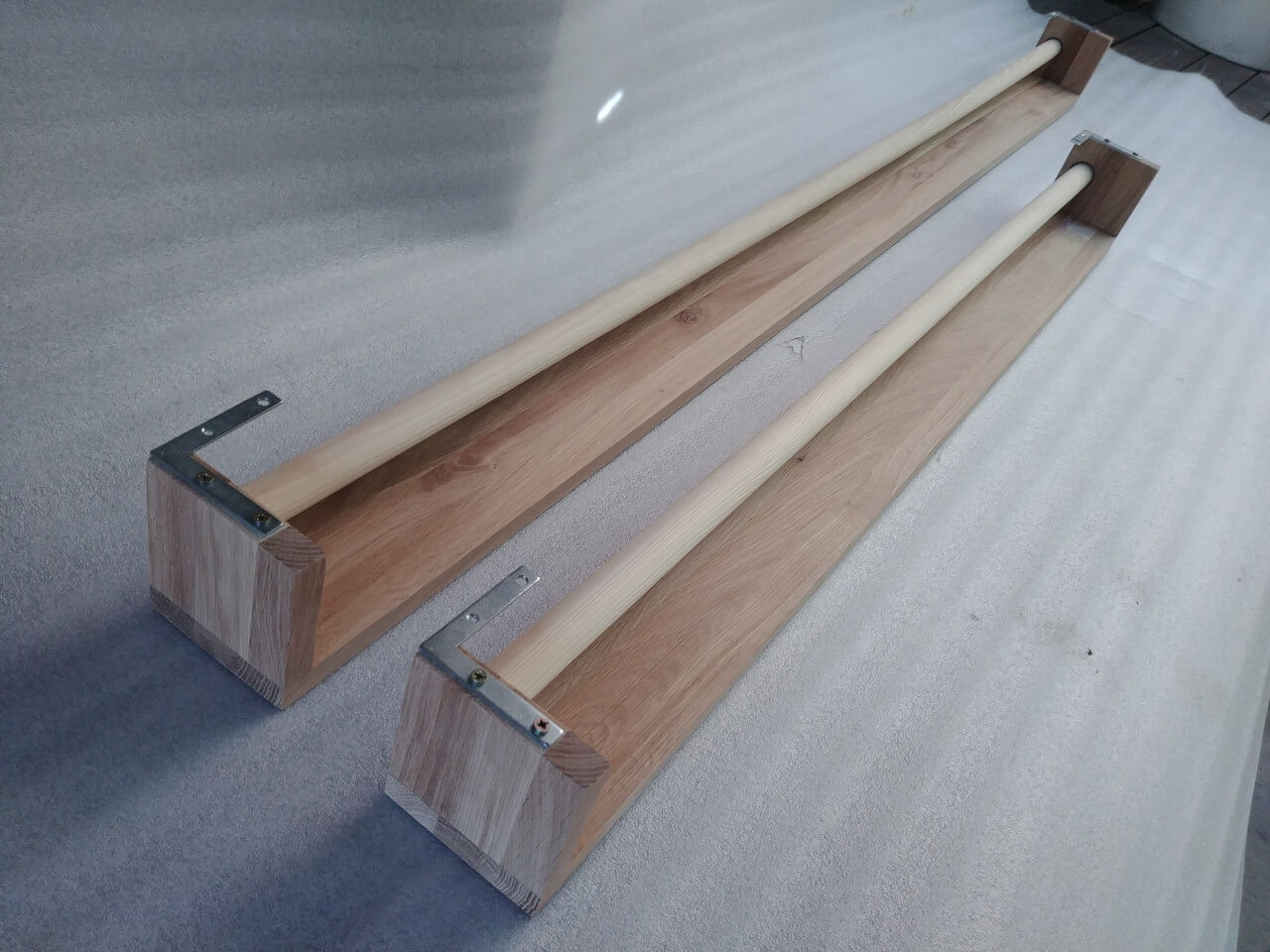 Traditional curtain rods made of Oak, single row, for poles, natural color, brushed, without finish. Lengths, and finishes on request.
