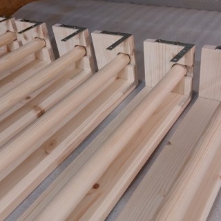 Traditional curtain rods made of spruce wood to size, with rods and wooden wheels, straight side profile, sanded, raw for self-finishing.