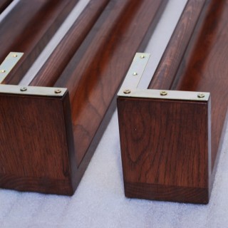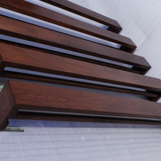 Traditional oak curtain rods, dyed dark brown, side profile straight, single row, for perches and wooden earrings, dimensions and profile on request.