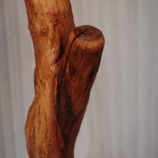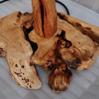 Floor lamp in a homogeneous style made of plum tree and birch patch. Natural wood surface, brushed and varnished. Without a shade, selected on its own. Equipped with modern, economical and non-heating LED bulbs and high-quality thick rubber wires passed through the center of the stem. Height 150 cm, base diameter 30 x 30 cm