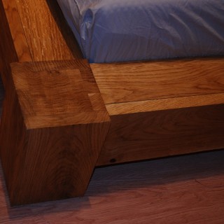 Bed made of Oak Beams with a cross section of 20 x 15 cm. Beams are glued from 30 mm boards and hollow to reduce weight, brushed with a matte finish. The bed is low in the Japanese style.