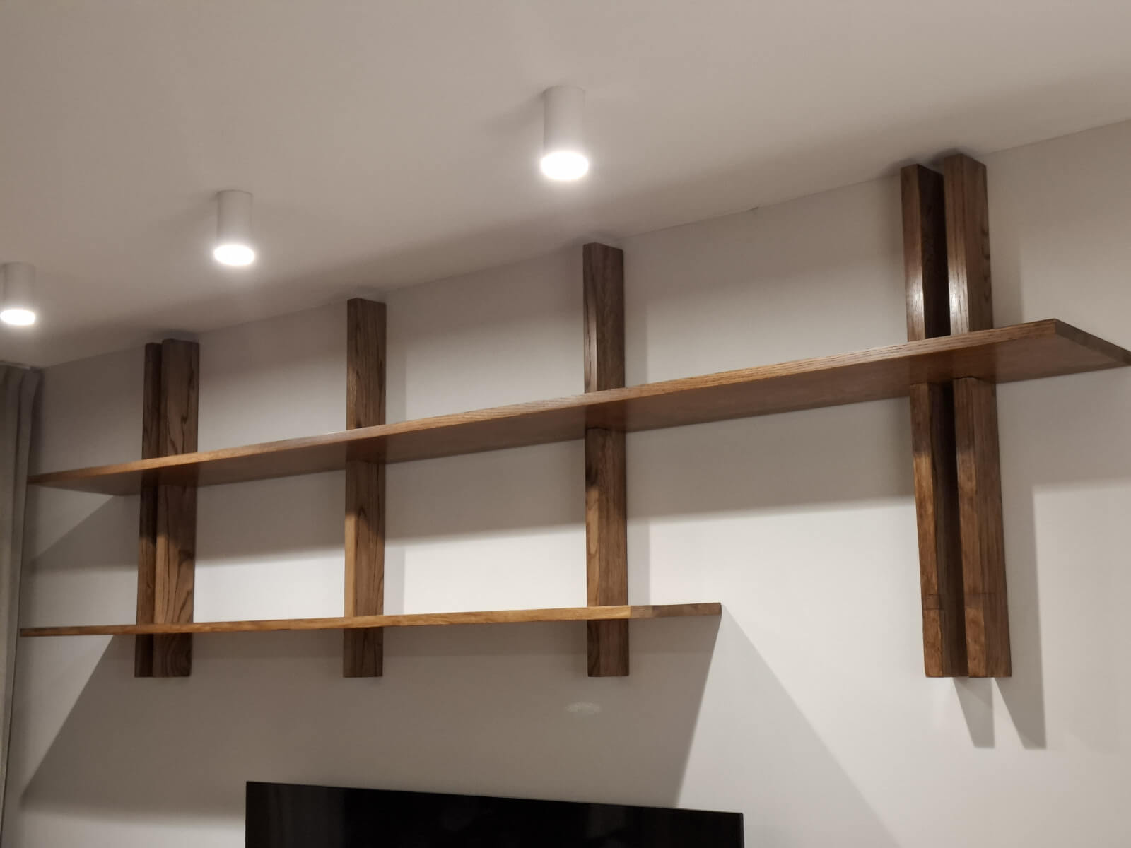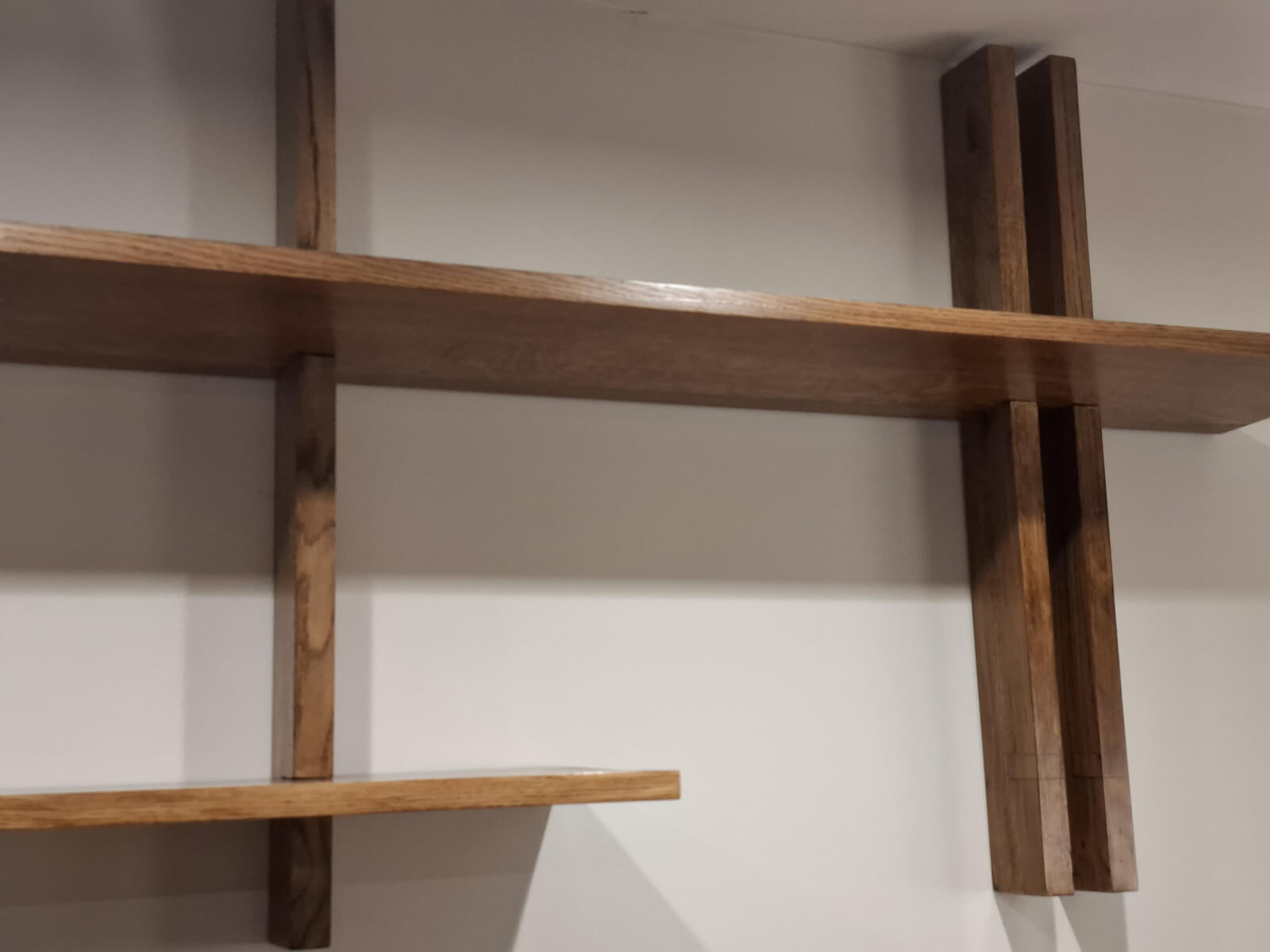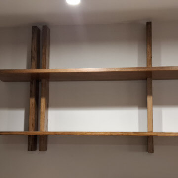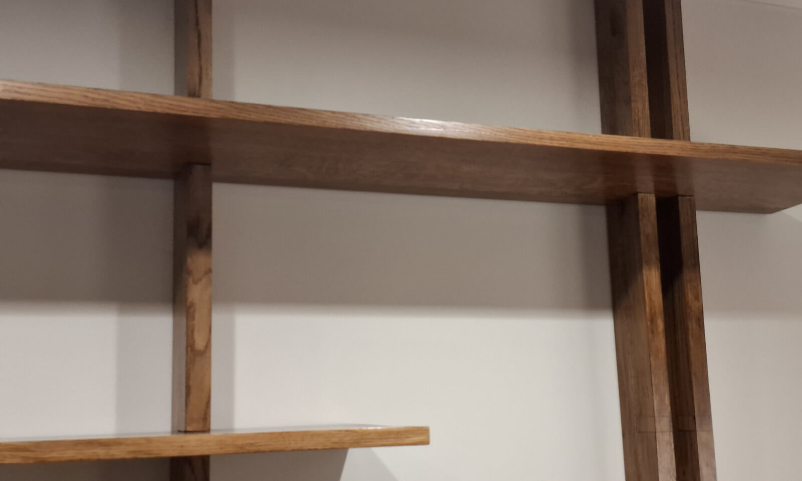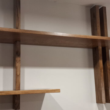 Oak bookcase, hanging, dimensions 250x80x25cm, stained dark brown, matte lacquer