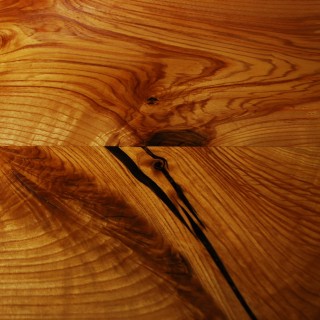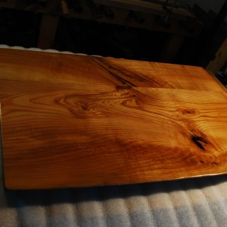 Self-supporting shelf made of solid Ash log