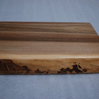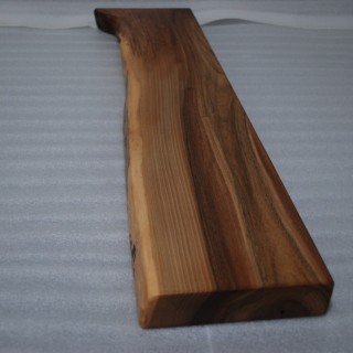 Self-supporting shelf made of solid Walnut 40mm thick, natural front edge, natural color, matt lacquered. On the back edge there are 3 mounting holes with a diameter of 12mm