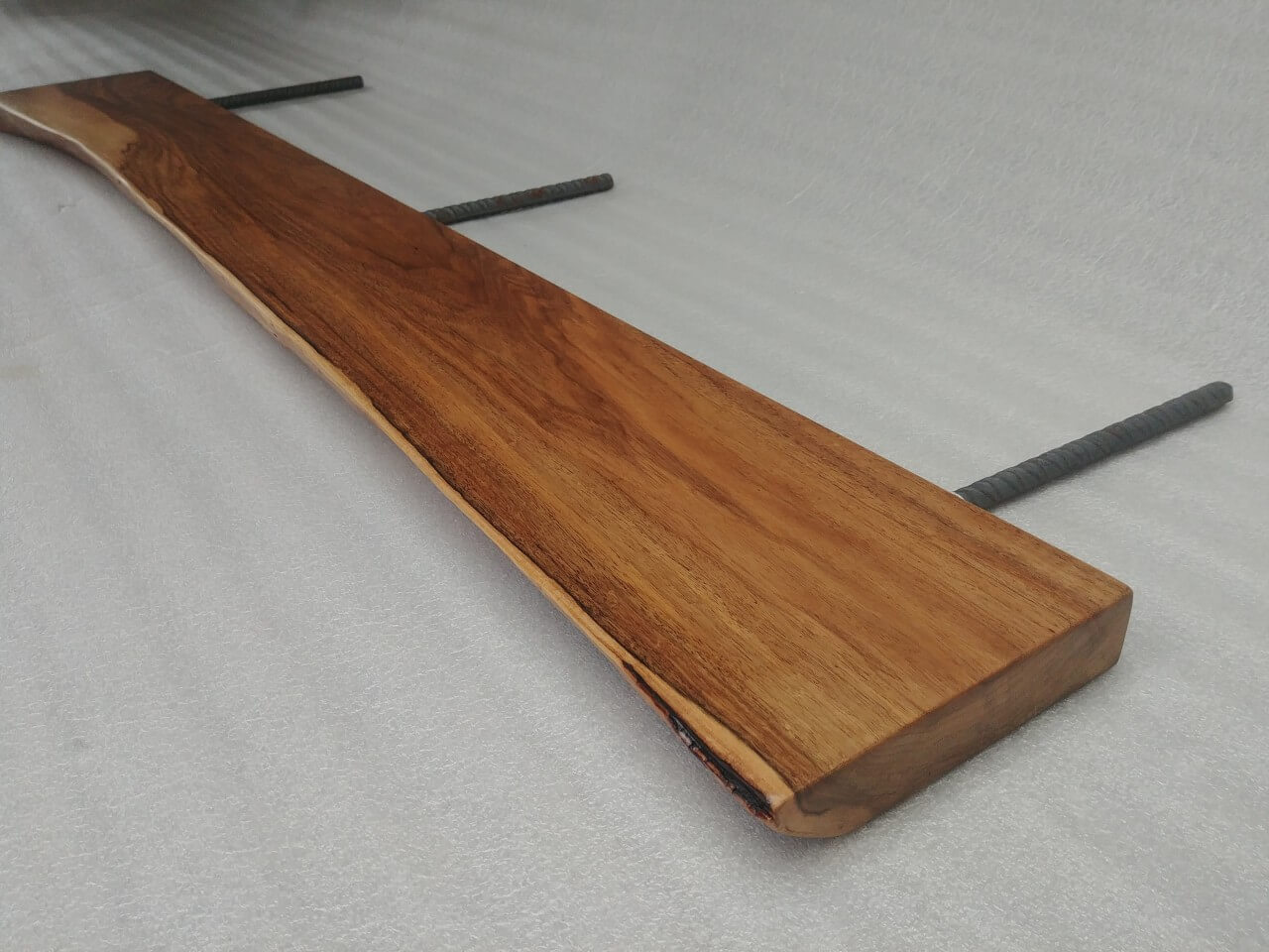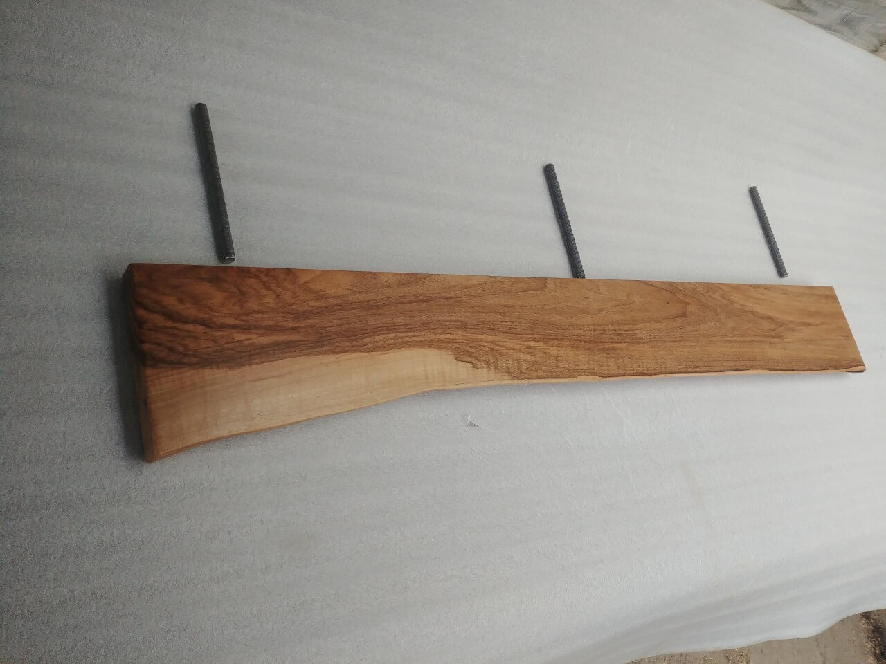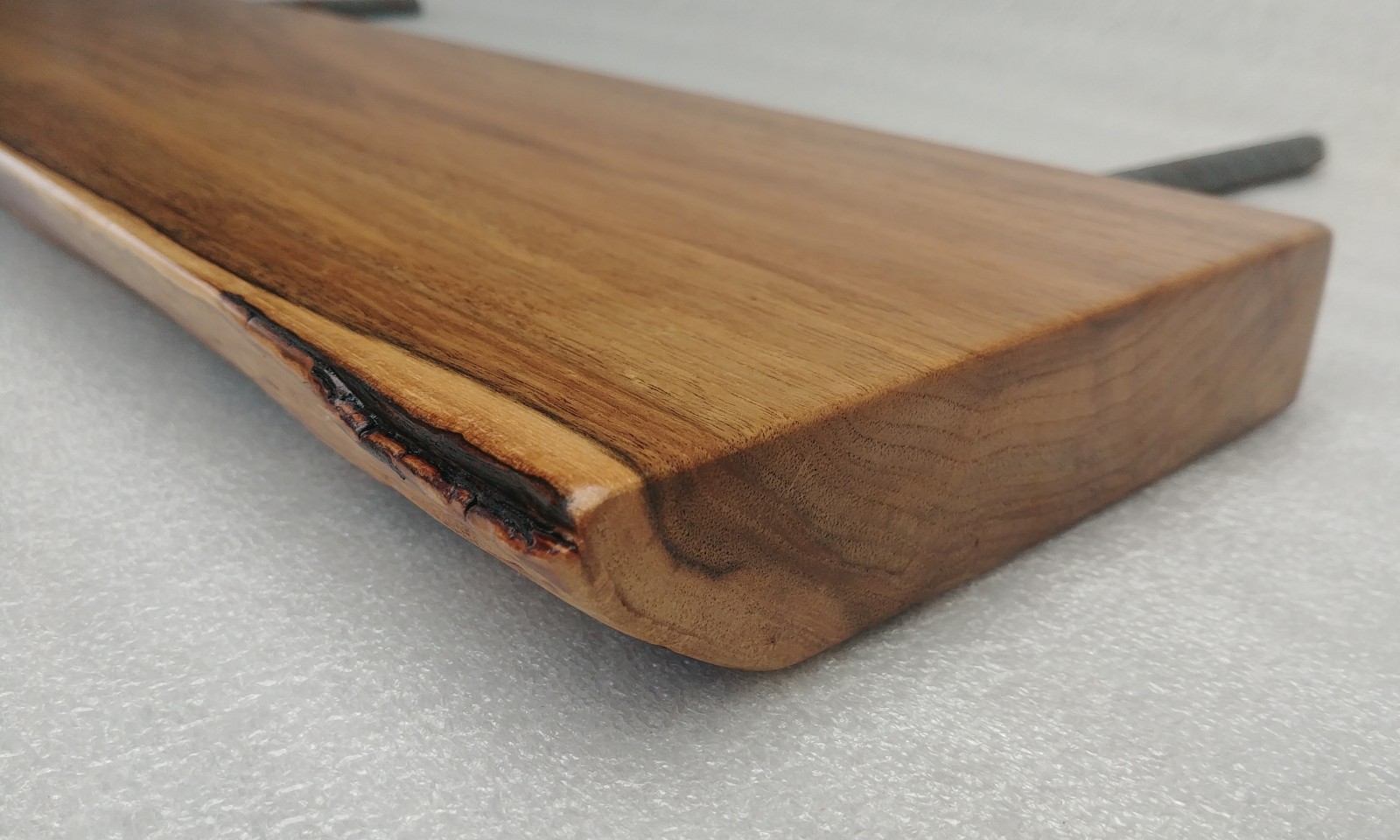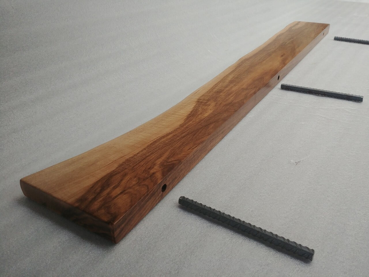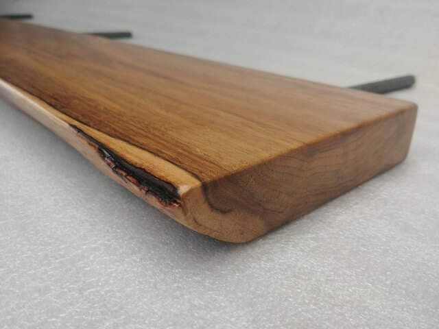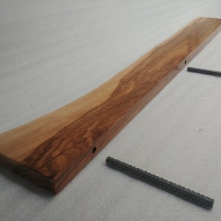 Self-supporting shelf made of solid Walnut 30mm thick, natural front edge, natural color, matt lacquered. There are 3 mounting holes in the rear edge with a diameter of 12mm. Dimensions: 120 x 12cm
