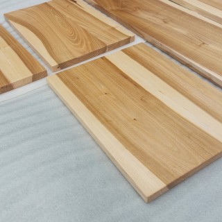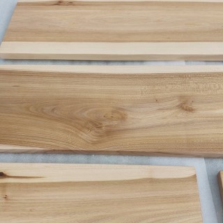 A set of custom-made kitchen shelves made of elm wood in a natural color. thickness 20mm, matt varnish