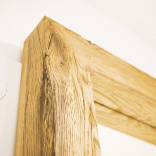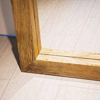 Large mirrors made of thick oak scantlings, intentionally with numerous cracks, knots and other "flaws", brushed and matte finished.