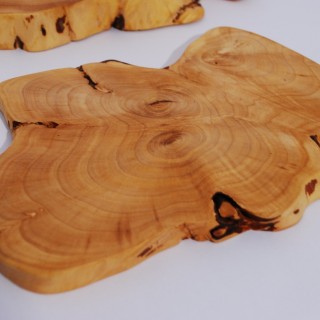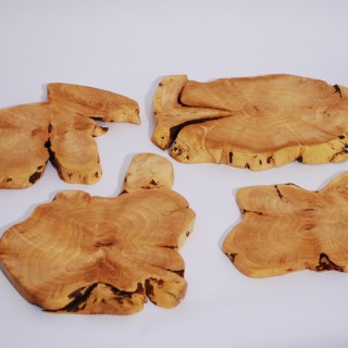 Magnolia root chisellies for hot dishes. Smooth polished and oil protected. 15-20 cm diameter.
