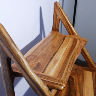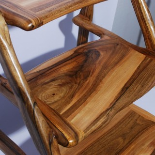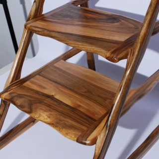 Stairs to the wardrobe or other walls with high buildings, made of Walnut, lightweight portable design, irregular, rounded shapes, natural color, matte varnish. Dimensions: 60 x 50 x 35 cm.