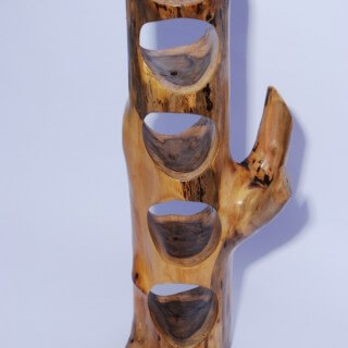 Wine rack made of a fragment of the Walnut trunk, natural shapes, holes for 4 bottles, matt varnish. Height 65 cm.