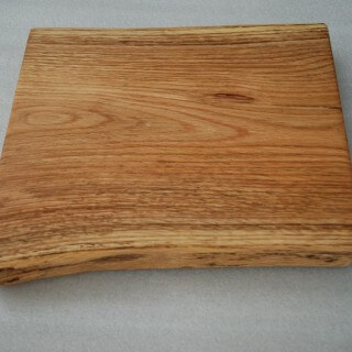 Kitchen board made of Oak wood, 40 mm thick, rectangular shape, live edge, slightly rounded, soaked in natural linseed oil.