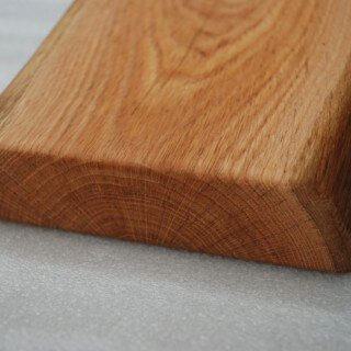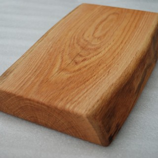 Kitchen board made of Oak wood, 40 mm thick, rectangular shape, live edge, slightly rounded, soaked in natural linseed oil.