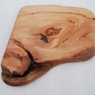 Kitchen board made of Apple wood, 20 mm thick, oval shape, live edge, soaked with natural linseed oil.