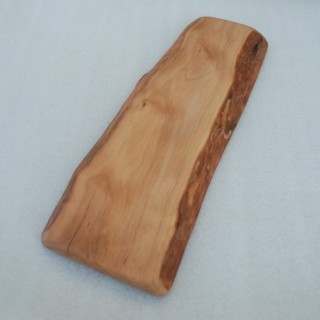 Kitchen board made of Apple wood, 20 mm thick, rectangular shape, live edge, slightly rounded, soaked in natural linseed oil.