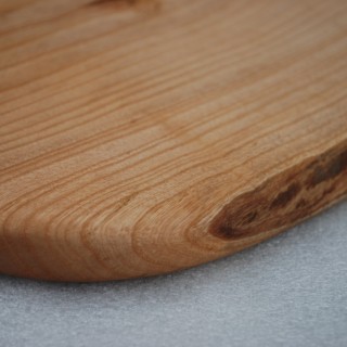 Kitchen board of 20 mm thick Ash wood, oval shape, slightly rounded edges, soaked in natural linseed oil.