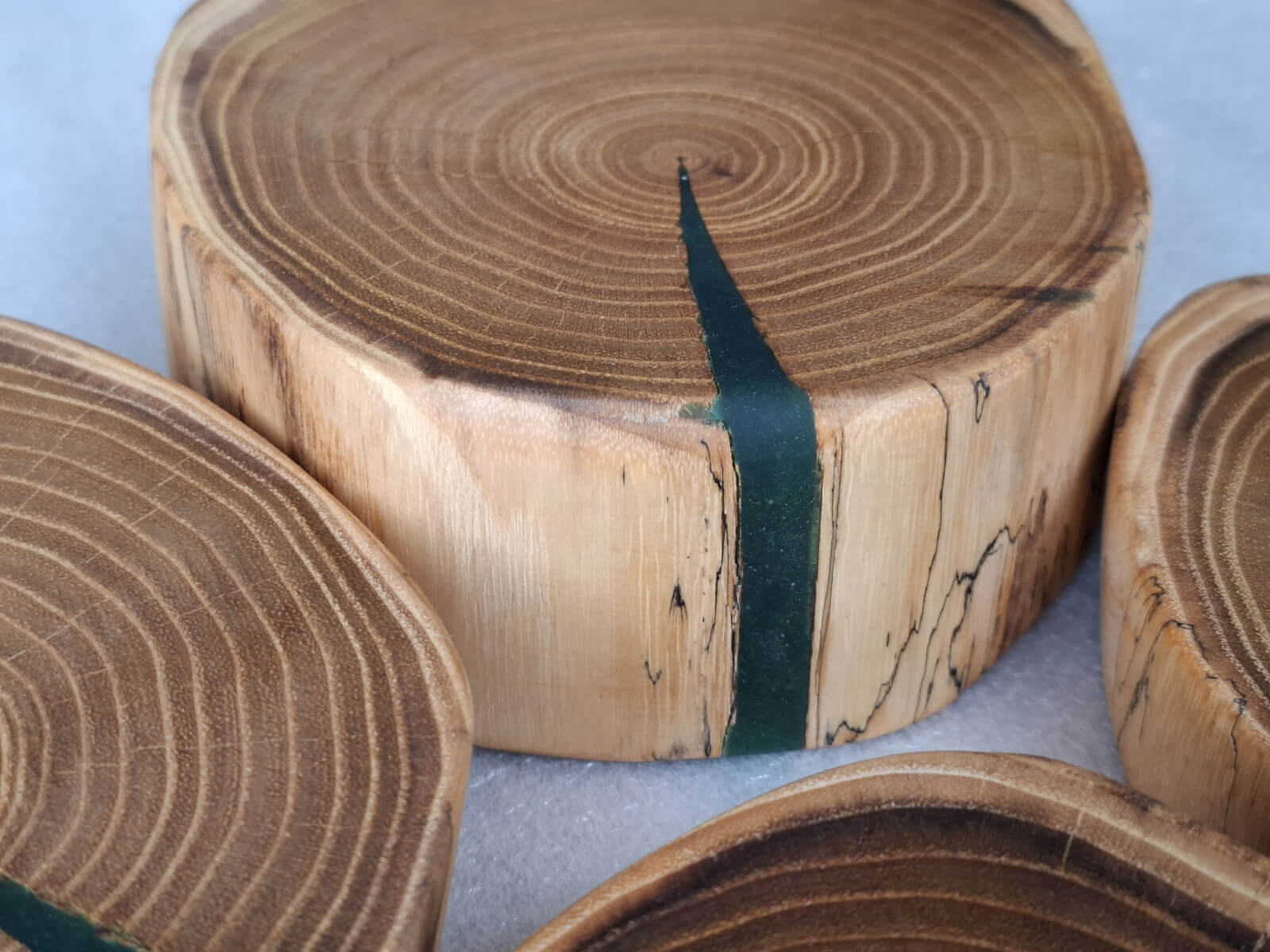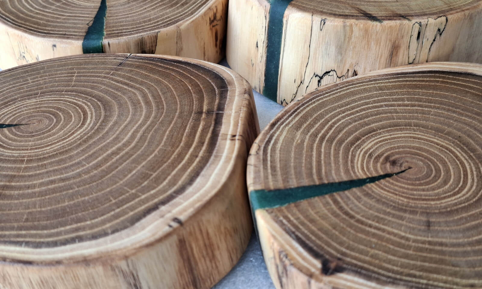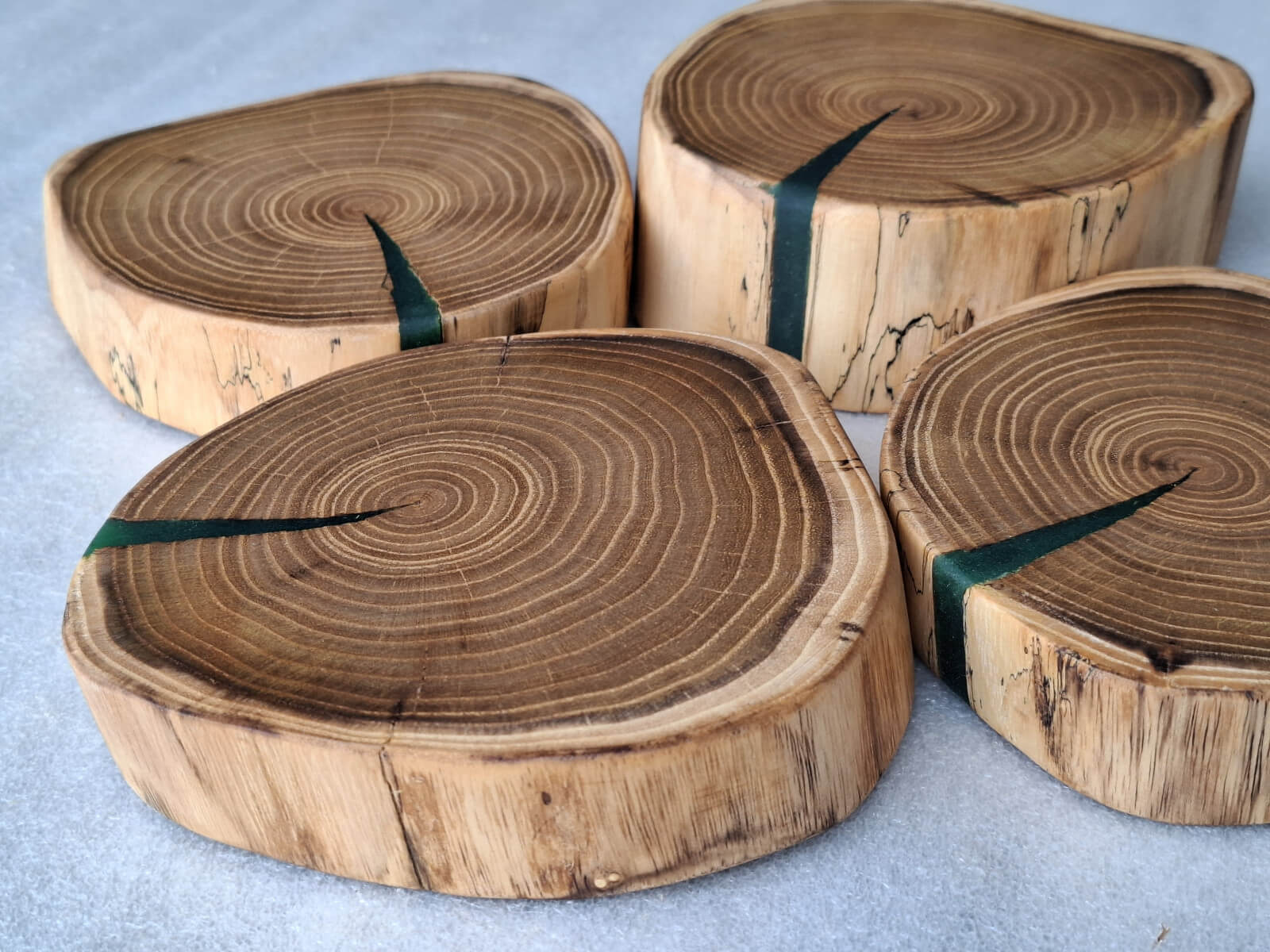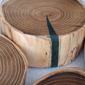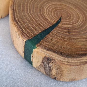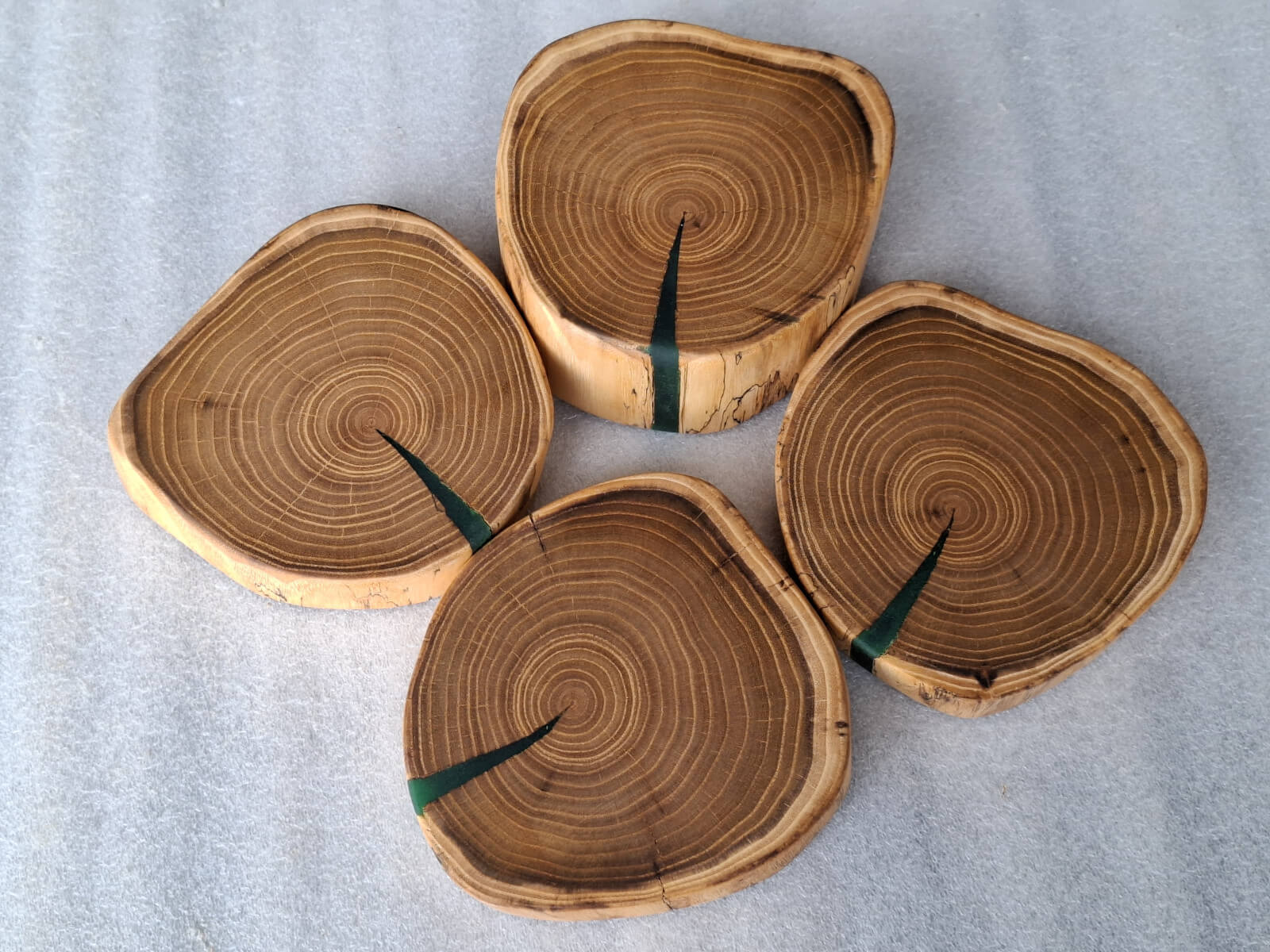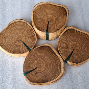 Kitchen coasters made of acacia robinia slices, 4 pieces, diameter 14cm, thickness 30-45mm, natural edge, soaked in linseed oil.
