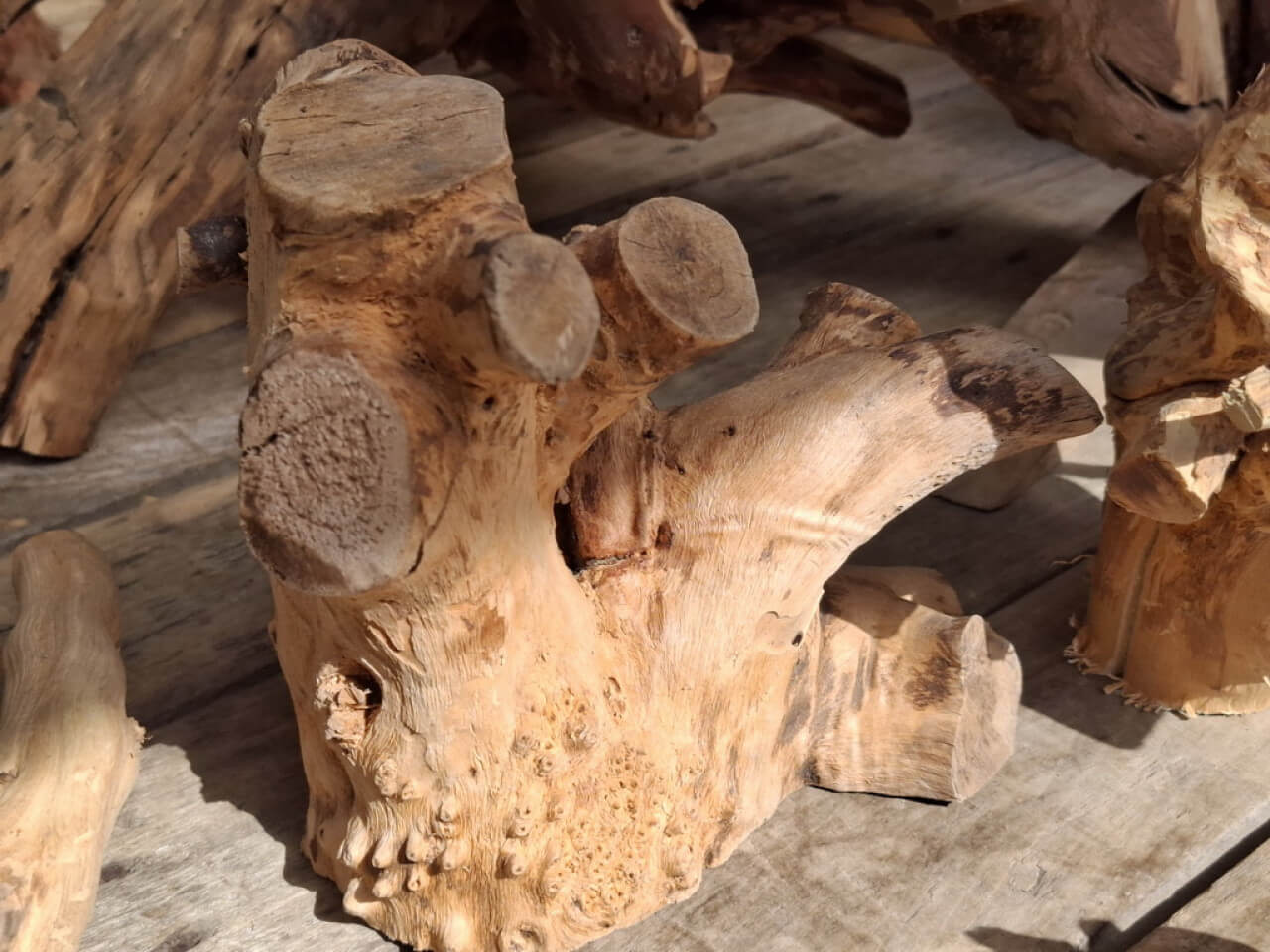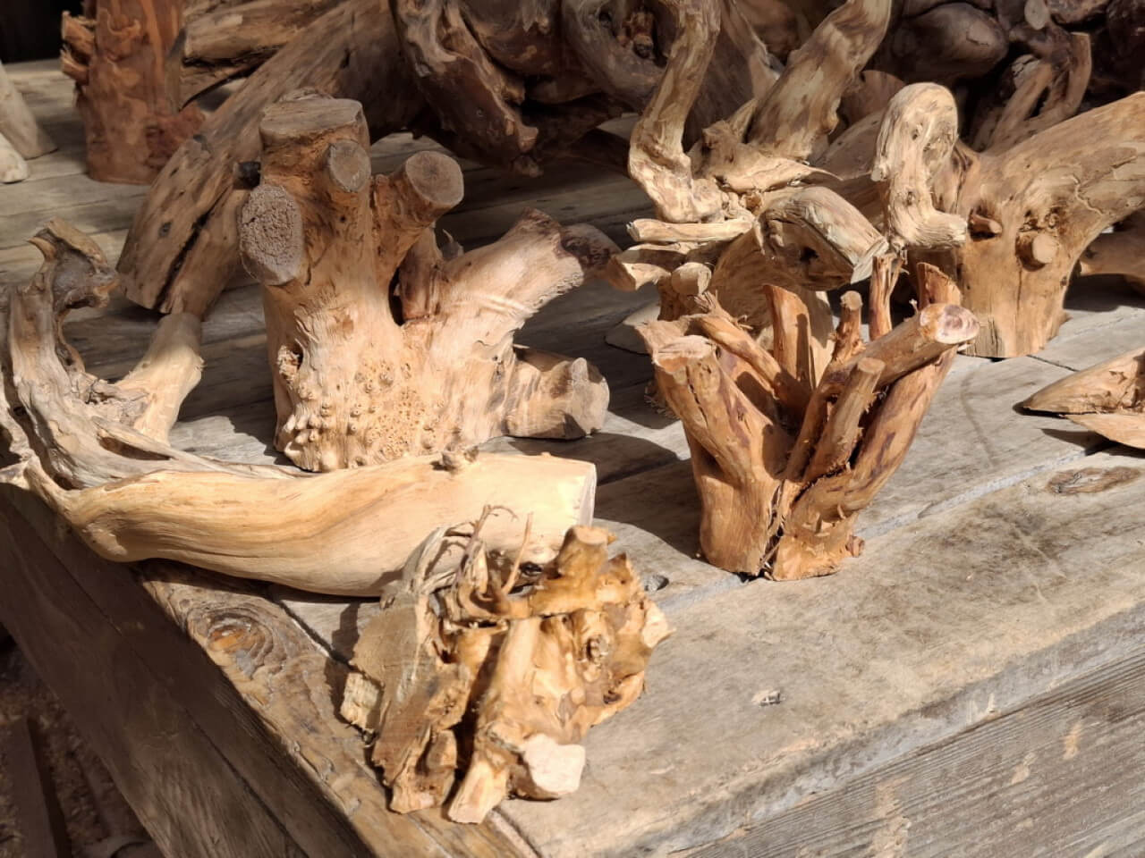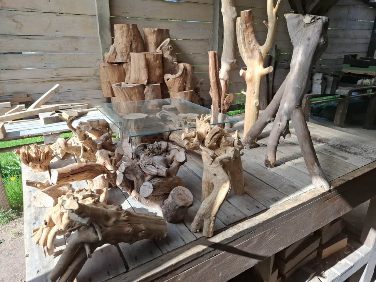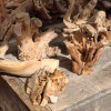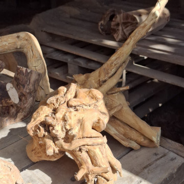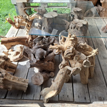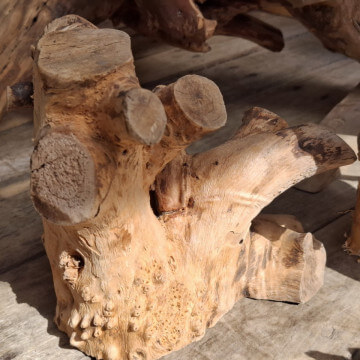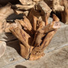 Korzenie niedużych rozmiarów, suche, wyczyszczone z kory, ziemi i piasku, wstępnie przycięte z wyrównaną bazą do postawienia lub przymocowania do ściany. Półprodukty, wymagają już niedużego nakładu pracy szlifierką/szczotkarką by stać się podstawą małego stolika, wieszakiem na biżuterię. Ceny 150-300zł za szt. w obecnym stanie, oczywiście jest możliwość wykończenia/wykonania gotowego wyrobu wedle pomysłu.