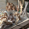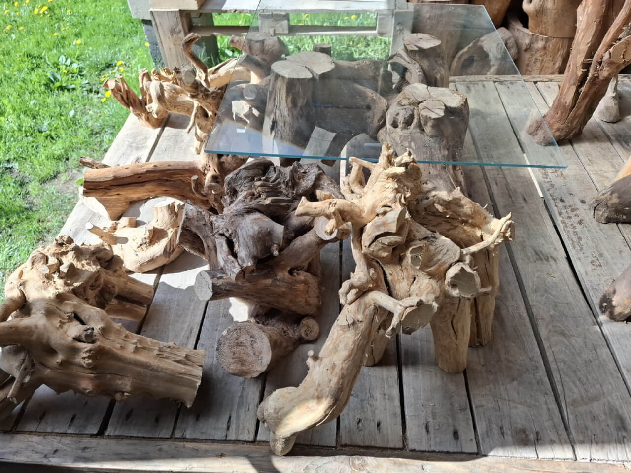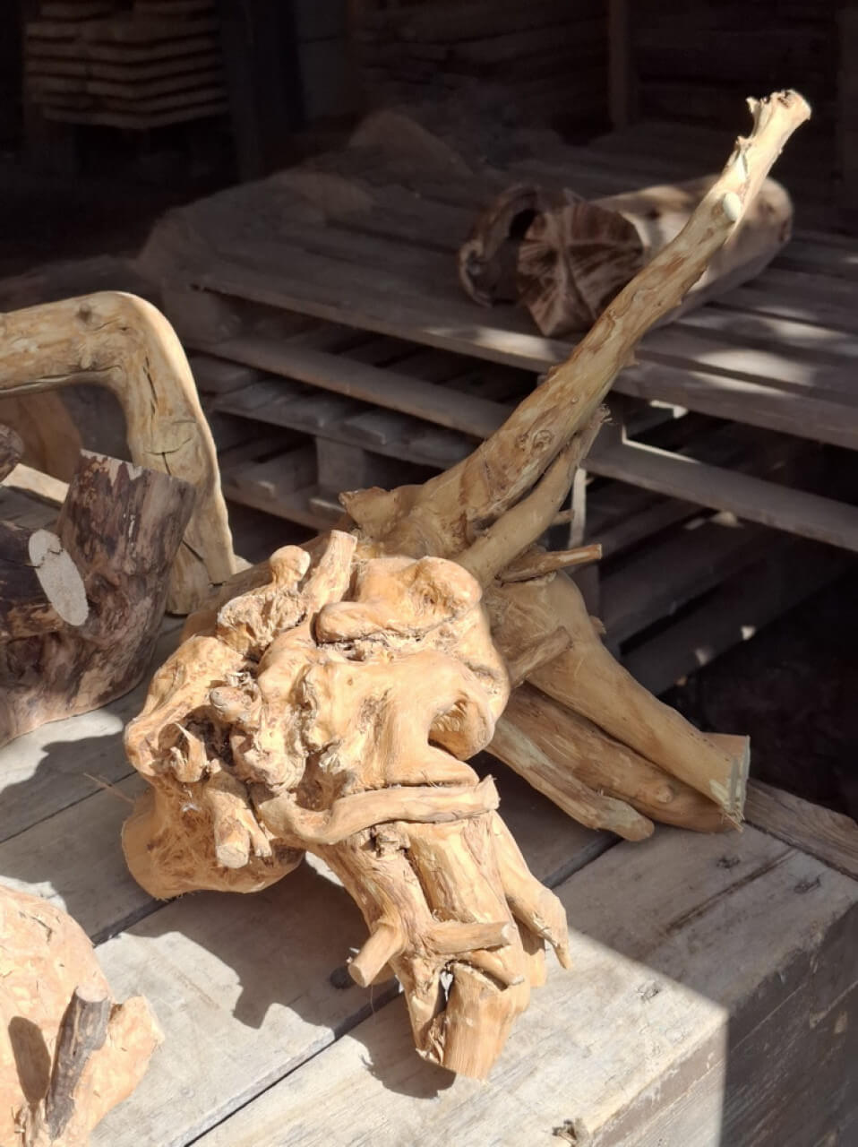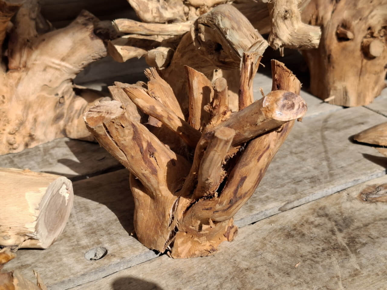 Korzenie niedużych rozmiarów, suche, wyczyszczone z kory, ziemi i piasku, wstępnie przycięte z wyrównaną bazą do postawienia lub przymocowania do ściany. Półprodukty, wymagają już niedużego nakładu pracy szlifierką/szczotkarką by stać się podstawą małego stolika, wieszakiem na biżuterię. Ceny 150-300zł za szt. w obecnym stanie, oczywiście jest możliwość wykończenia/wykonania gotowego wyrobu wedle pomysłu.