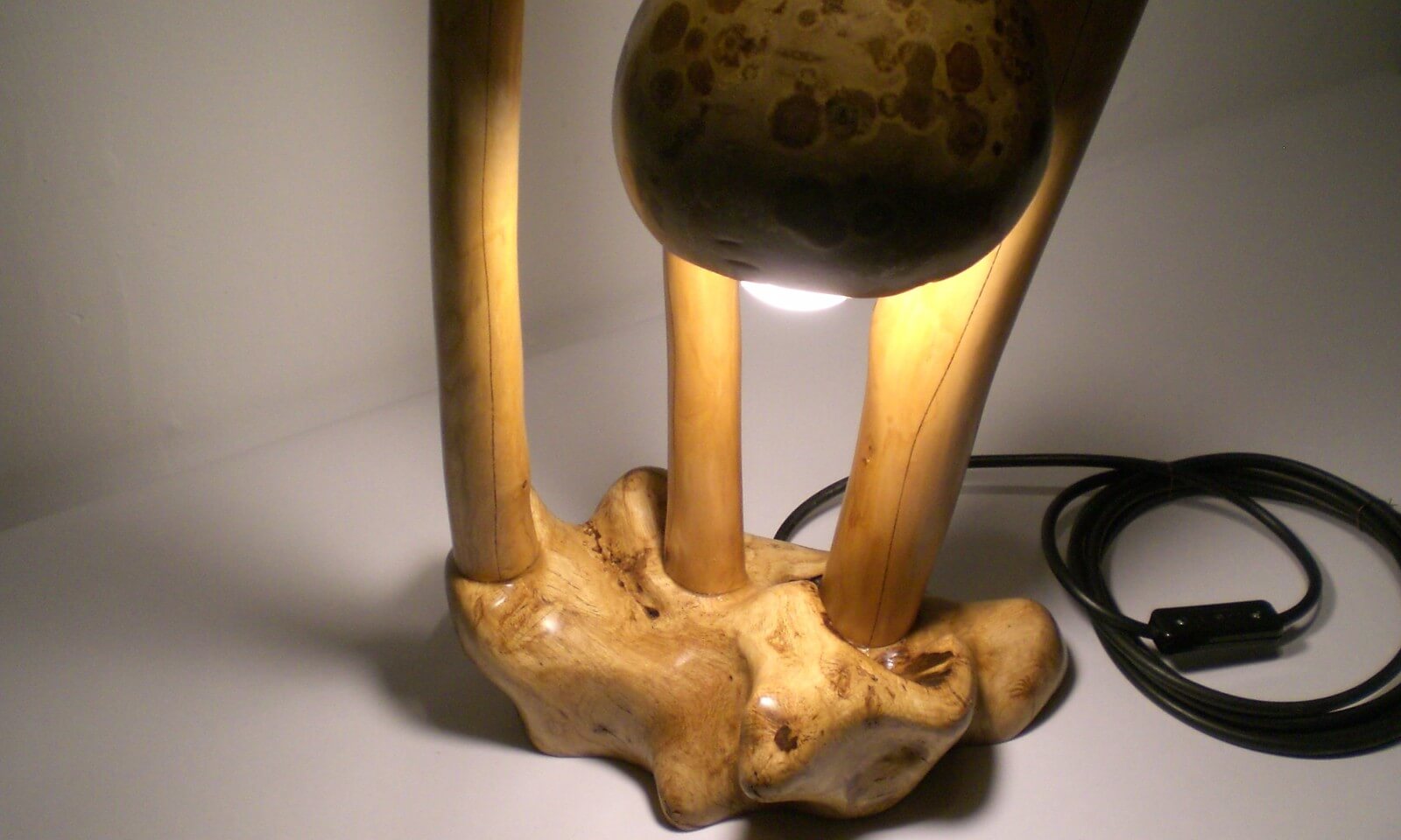 Lampy - wolnostojące, lub mocowane na stałe ścienne lub sufitowe. Formowane z litej bryły drewna lub łączone na różne sposoby z elementów dowolnego kształtu, kompozycje typu scrapwood z podświetlonymi prześwitami. Lampy mogą mieć zaoblone kształty, powierzchnię w większym lub mniejszym stopniu naturalną okorowaną, lub przestrzenną, rzeźbioną nieregularną, wykończoną szczotkowaniem, gładką lub ręcznie dłutowaną. Możliwe jest wykorzystanie drewna z naturalnymi krawędziami, półokrągłych lub całkowicie okrągłych fragmentów pni i gałęzi. Szczegóły konstrukcji, styl, wykończenie i zdobnictwo w zależności od upodobań, przewód we wnętrzu ramienia lampy, klosz dobierany oddzielnie lub autorski z owocu tykwy lub drewna.