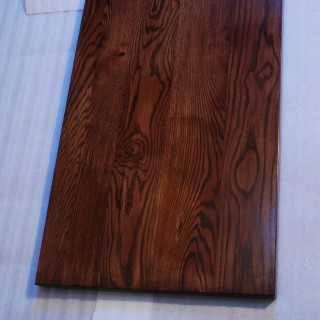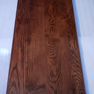 Blat Dębowy 40 mm grubości, barwiony na ciepły odcień brązu, lakierowany.