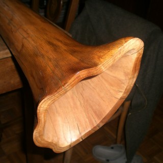 Długie, medytacyjne didge z młodego drzewka z twardym odziomkowym dzwonem o nieregularnym kształcie. Ozdobione trzema płynnie przechodzącymi kolorami bejcy i złotym motywem. Dźwięk głęboki, niski, do długiego grania na jednym oddechu.
