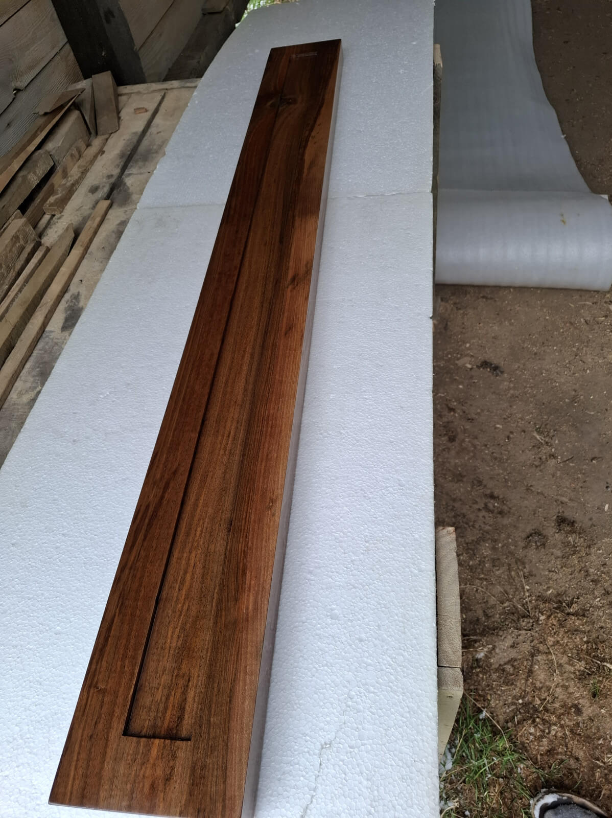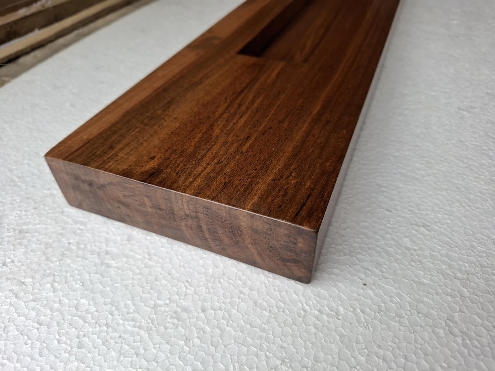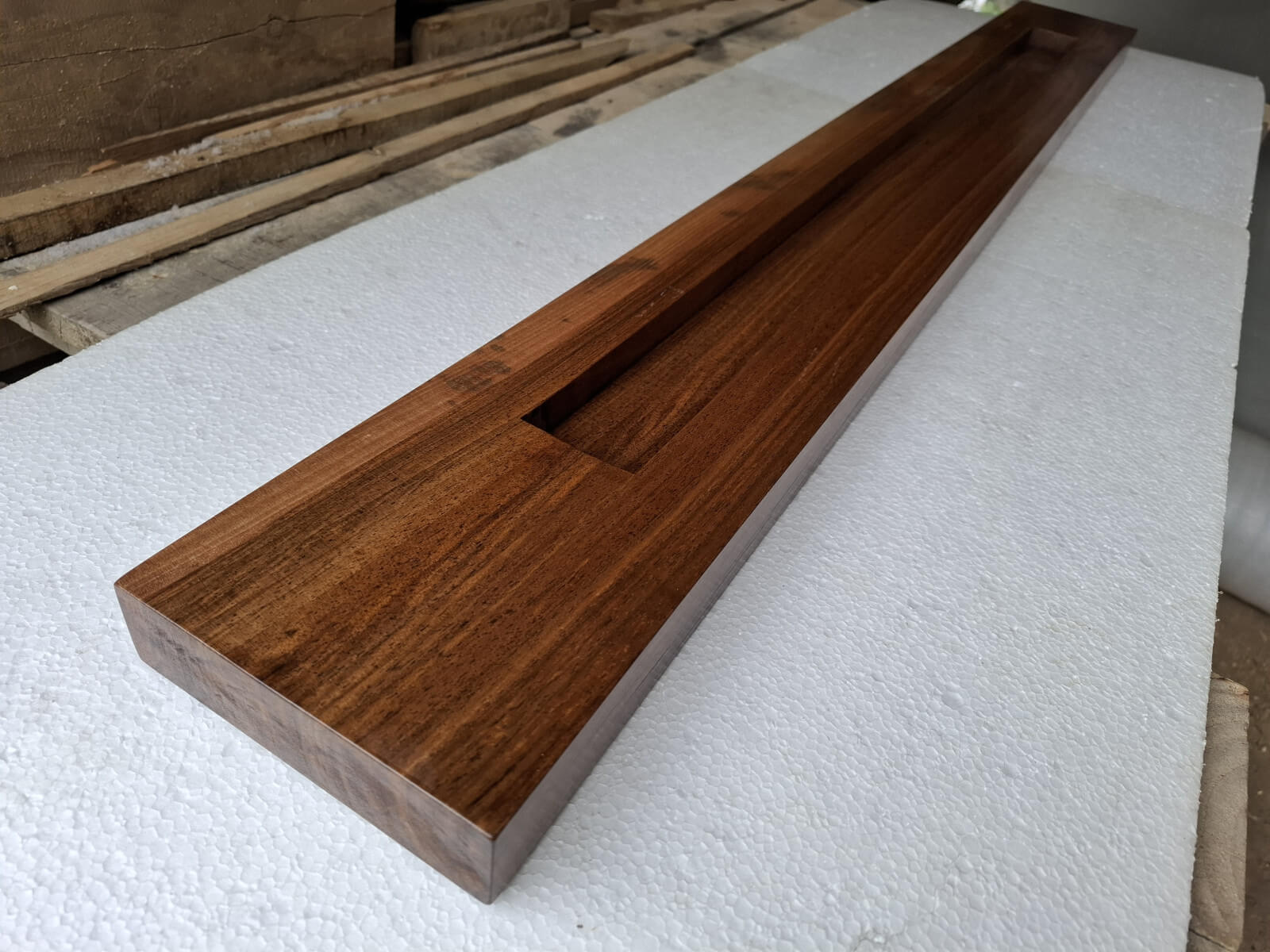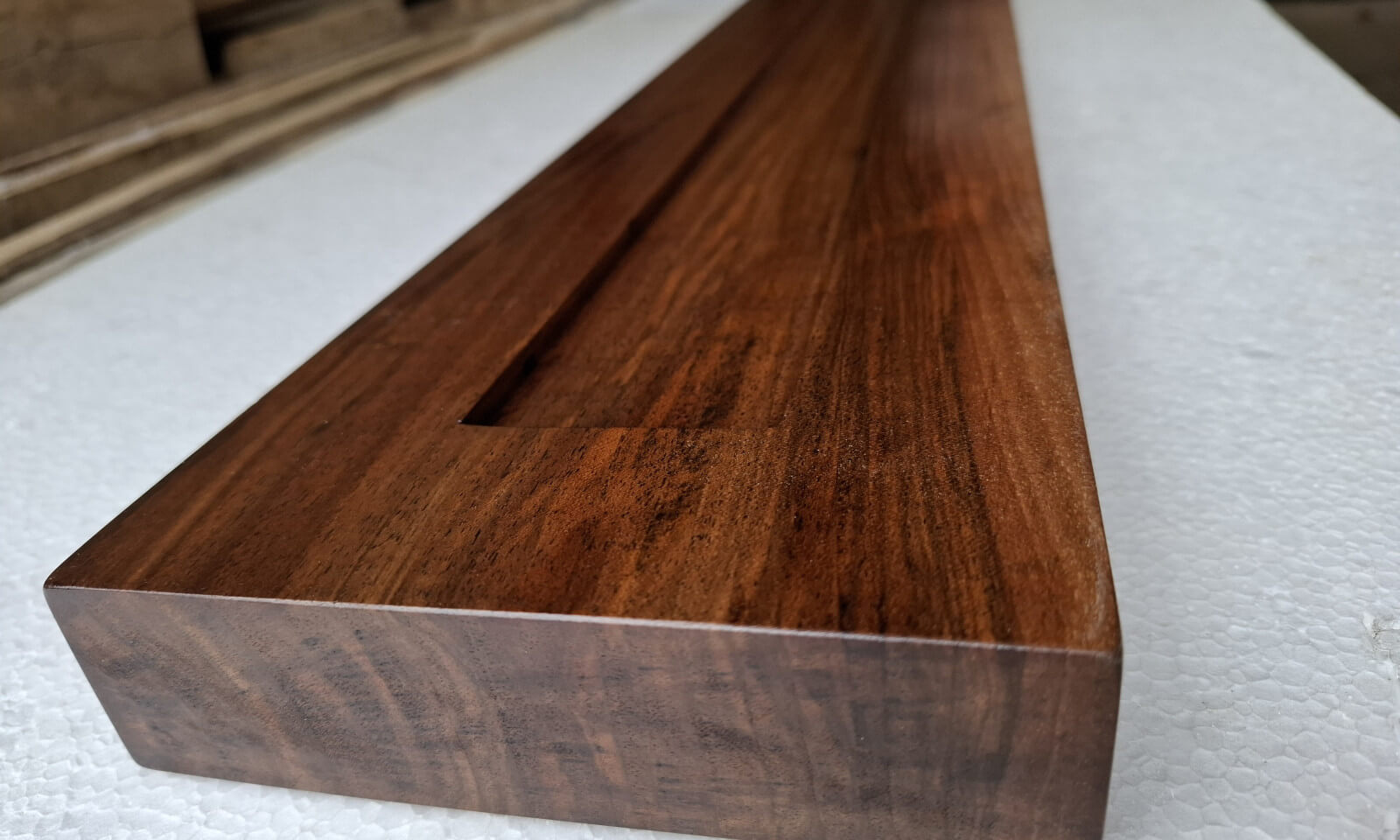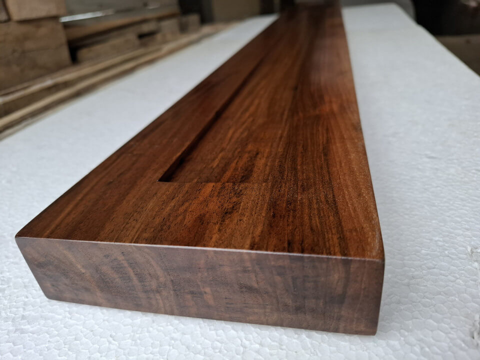 Belka z orzecha włoskiego z wyfrezowanymi wpustami na zamówienie, lakier mat
