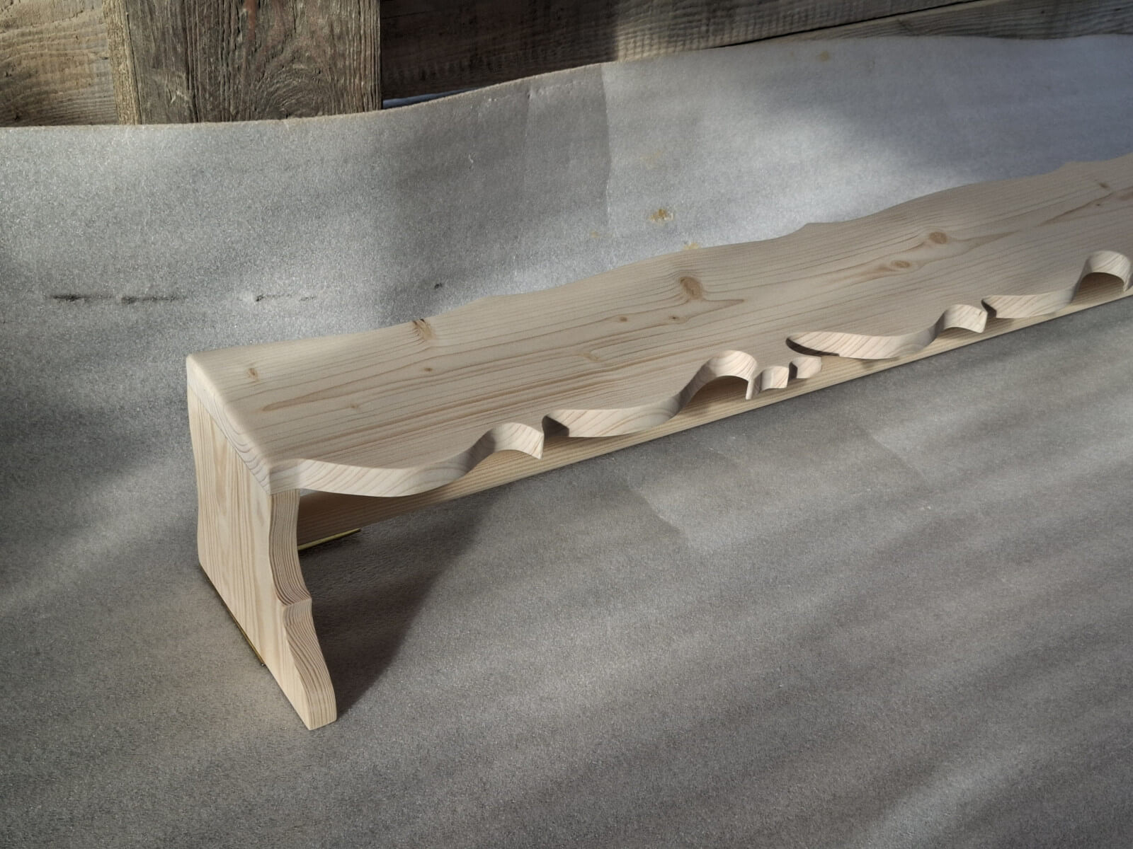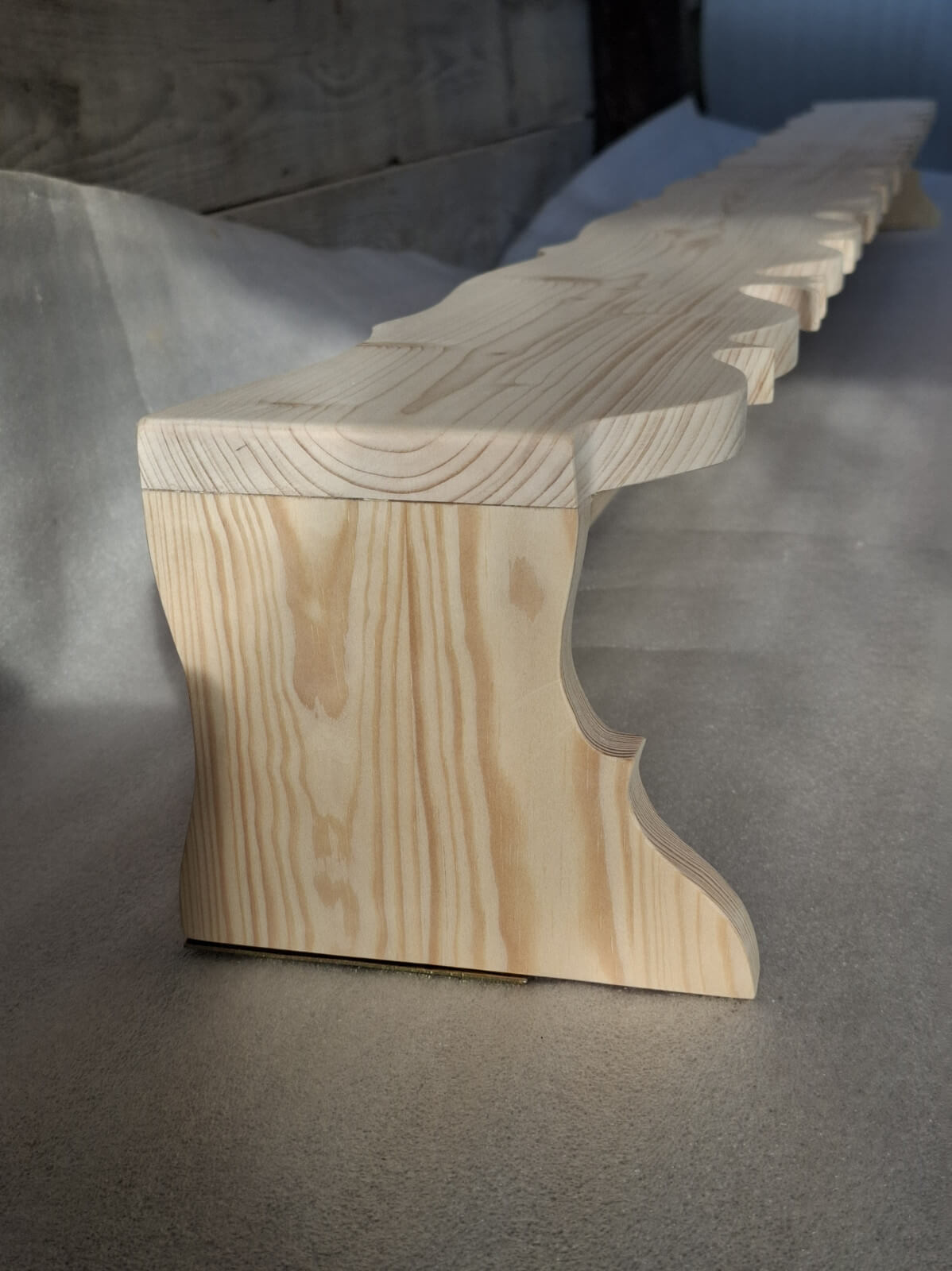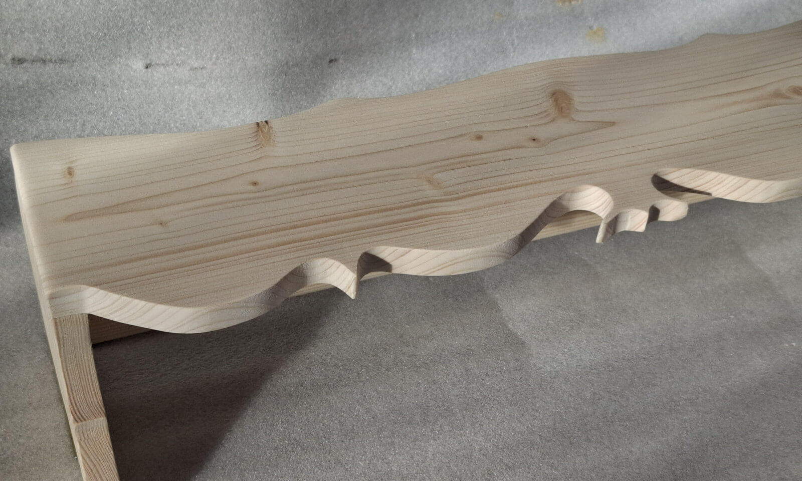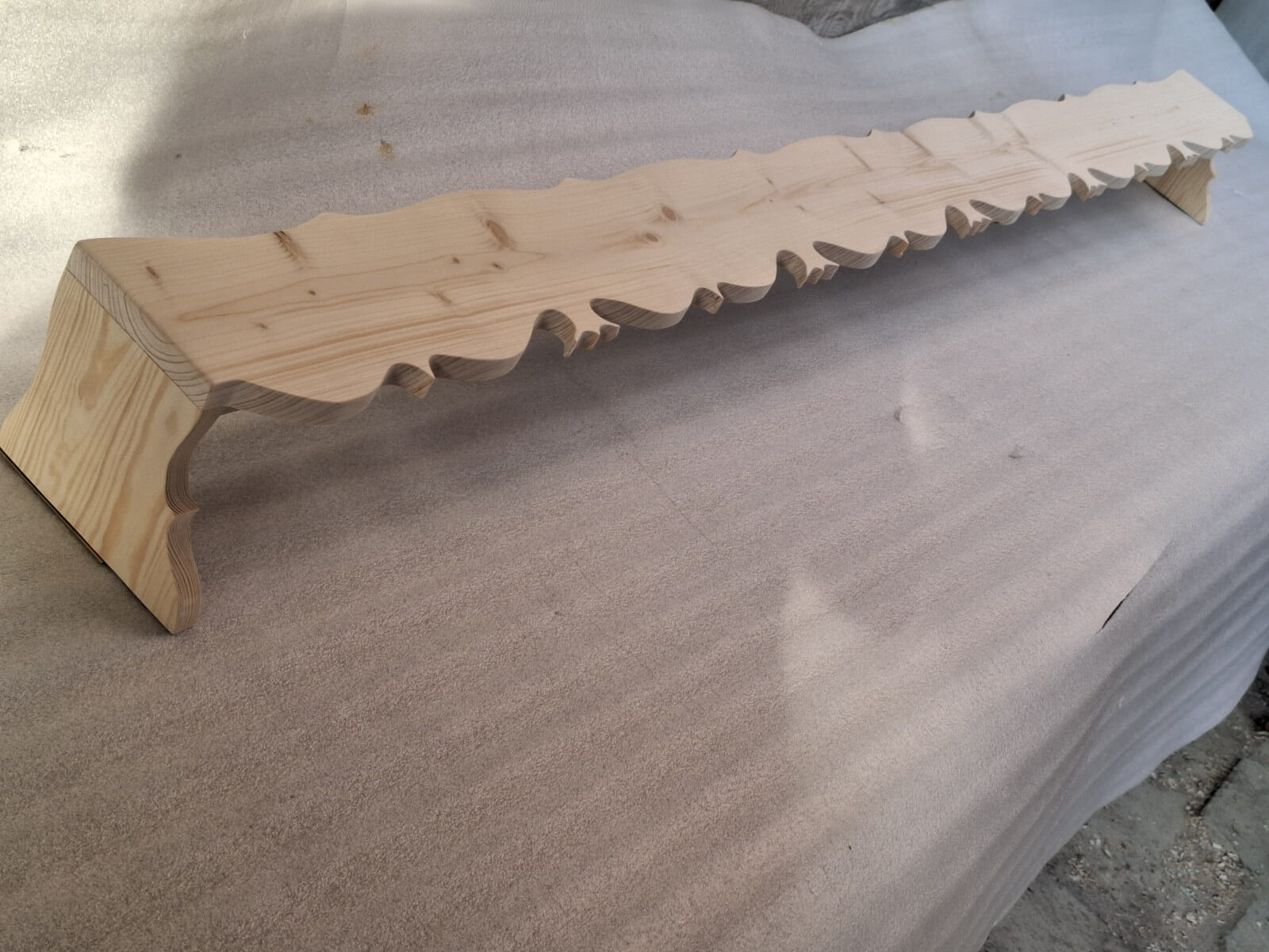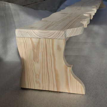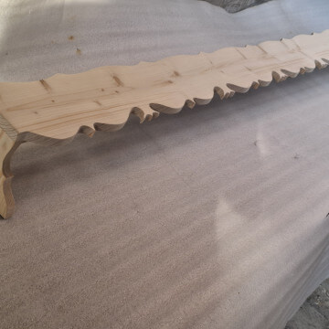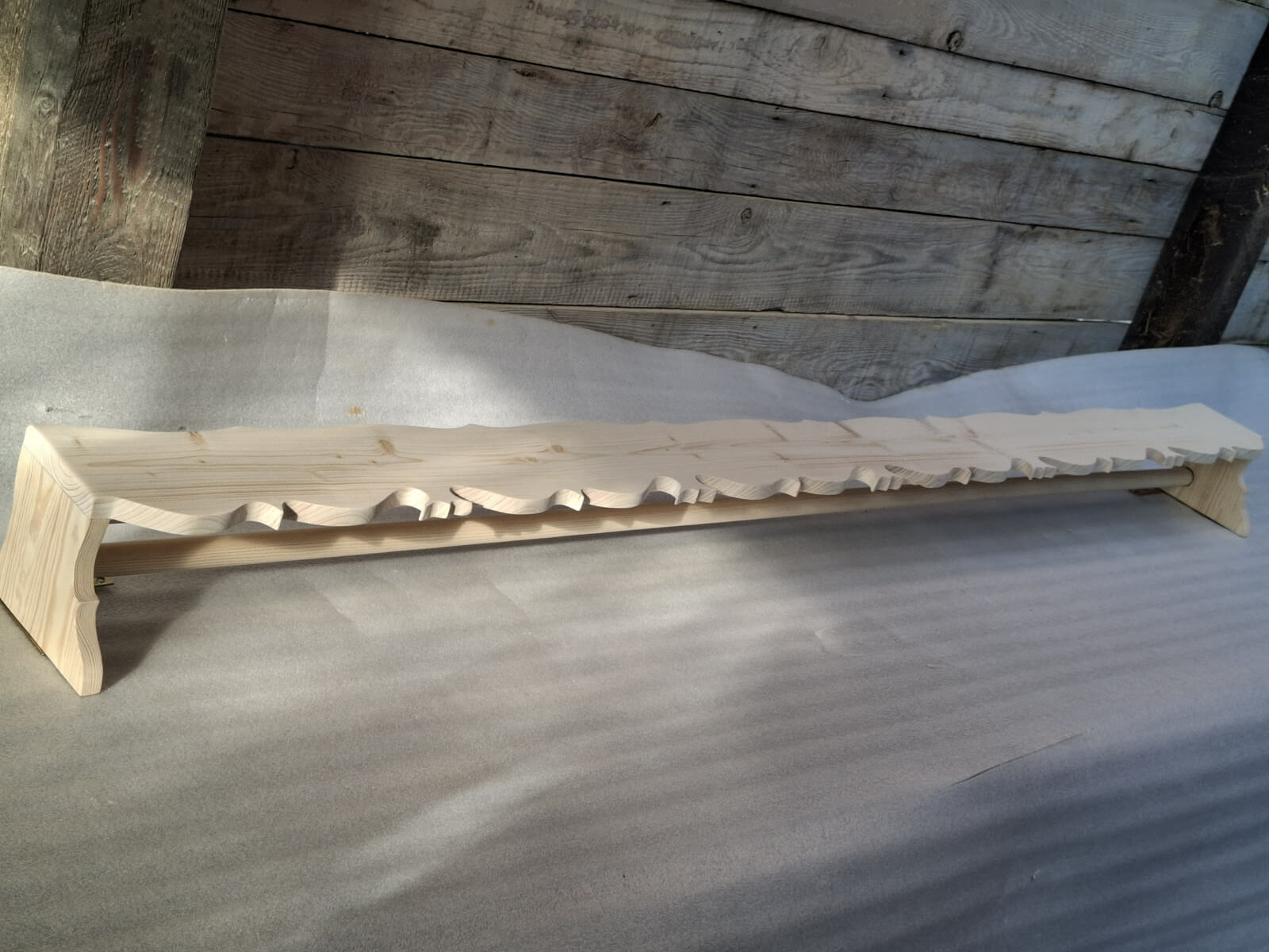 Karnisz tradycyjny z wyciętymi wzdłuż krawędzi ludowymi wzorami, drewno świerkowe szlifowane na gładko do samodzielnego wykończenia.