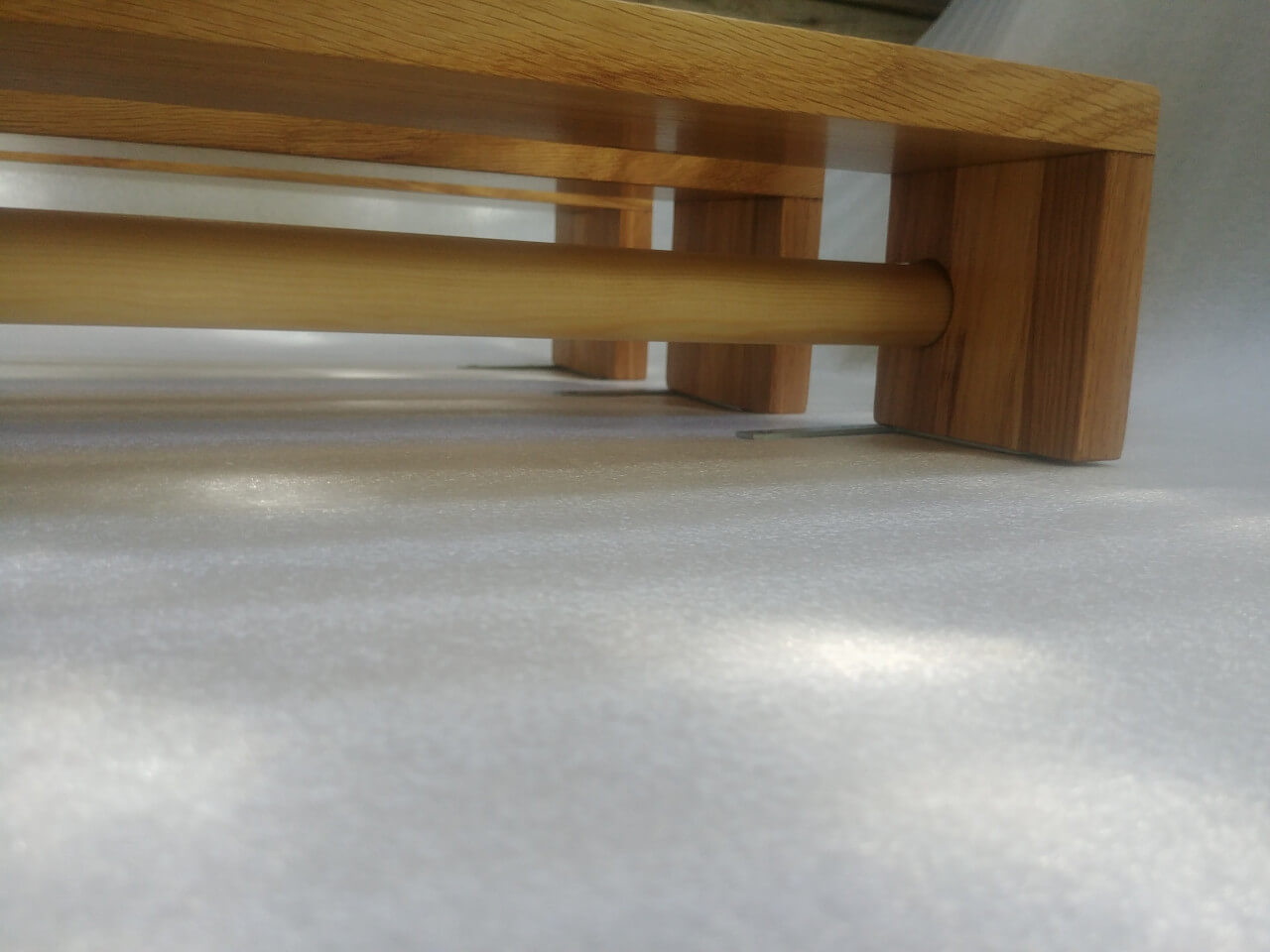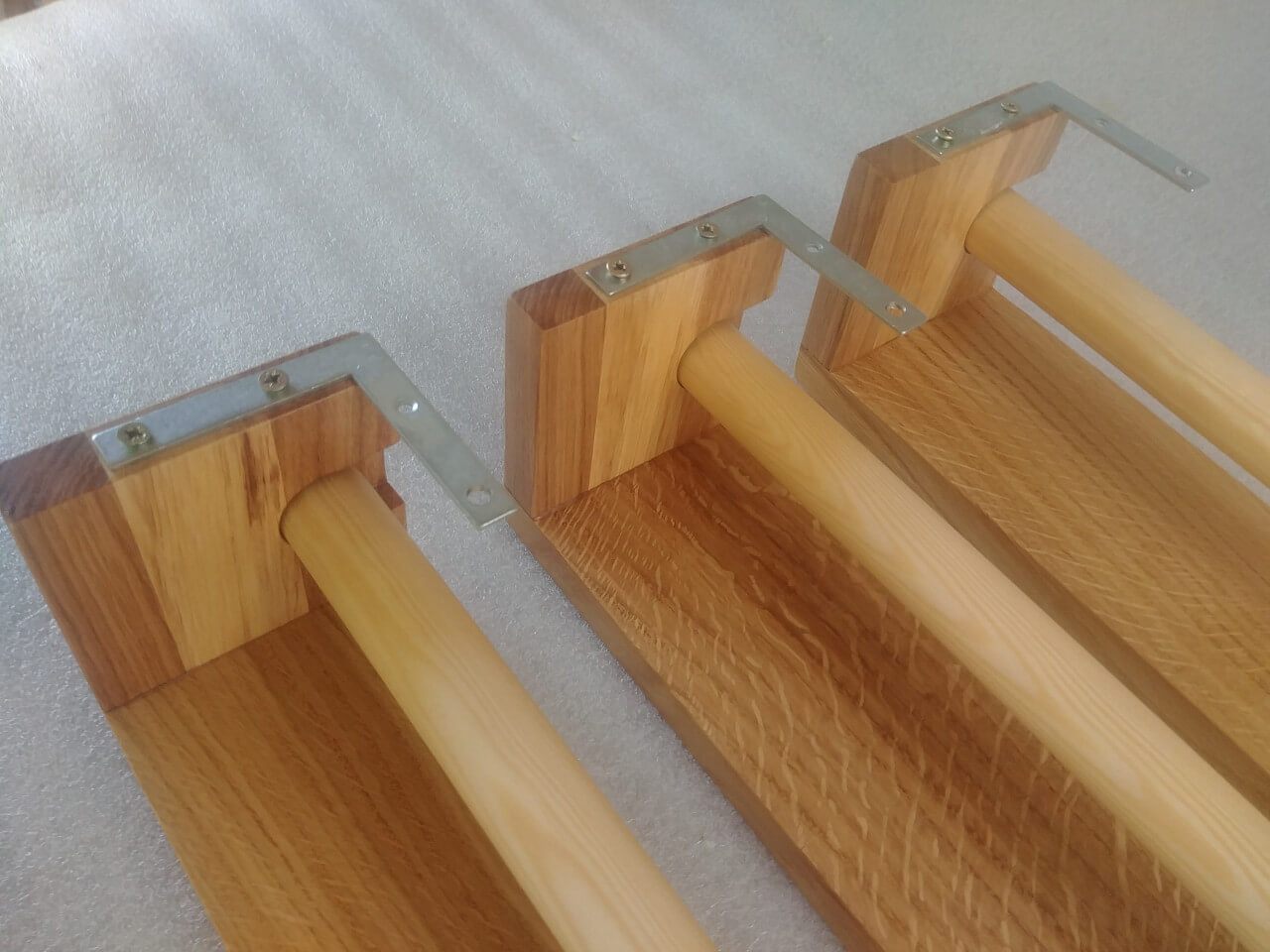 Tradycyjne karnisze z Dębu, jednorzędowe, na żerdki, prosty profil boczny, kolor naturalny, lakierowane. Długości, i wykończenie na zamówienie.