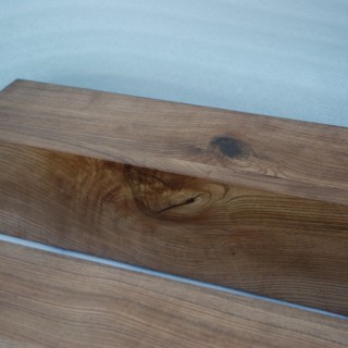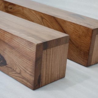 Karnisze pełne zabudowane z drewna jesionu barwione na średni brąz, bez drążków, z przeznaczeniem do montażu rolet od środka.