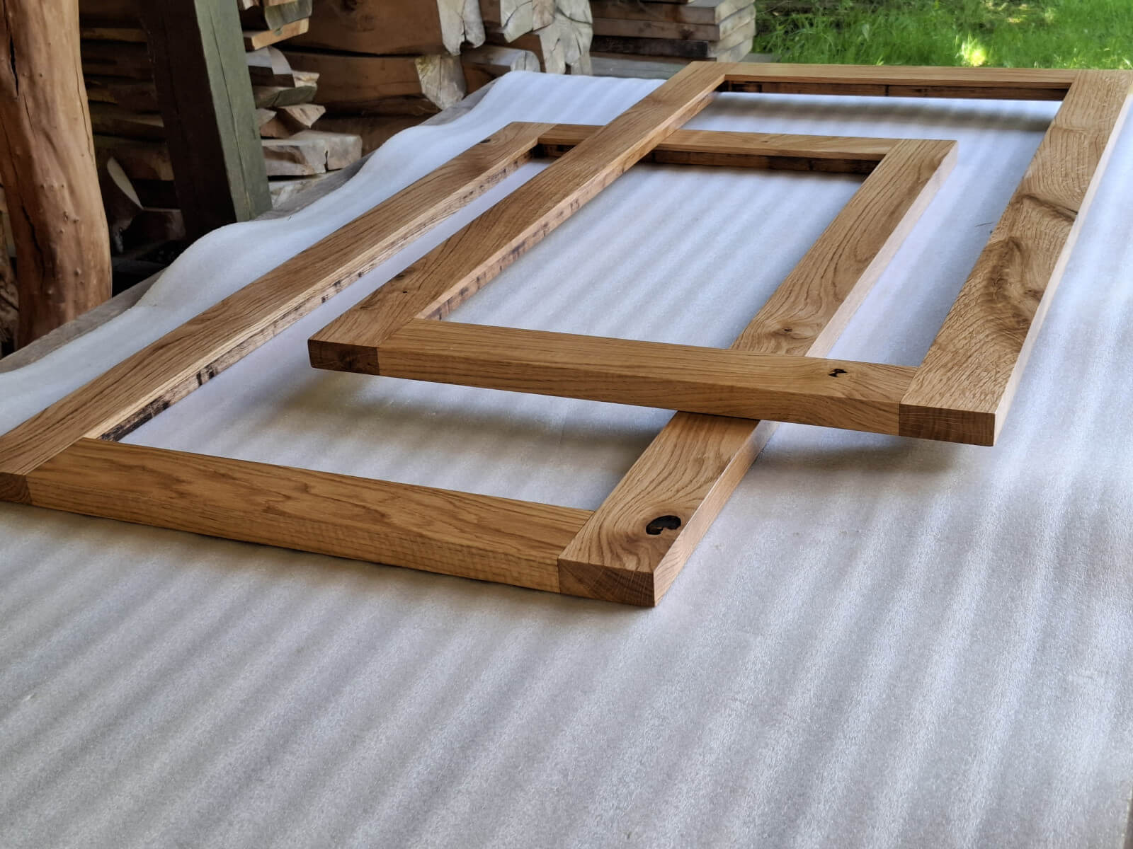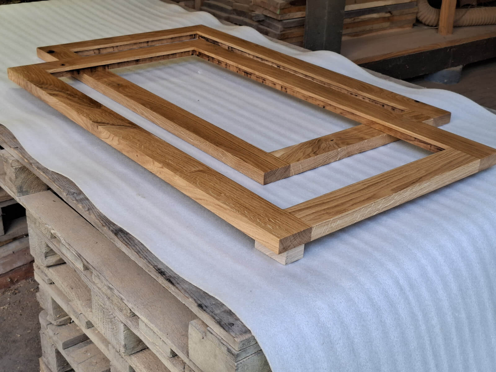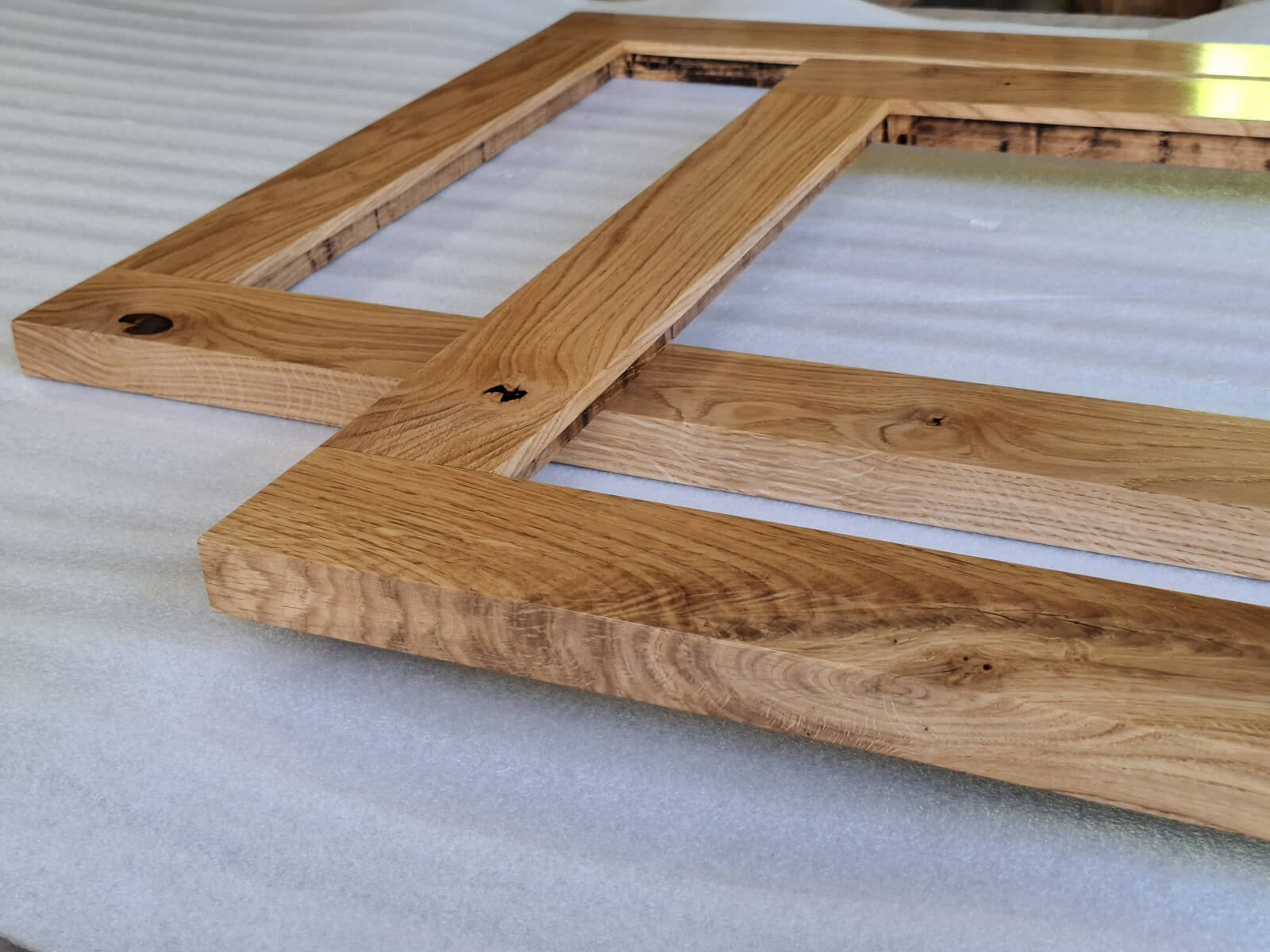 Ramy dębowe 100x50cm, szerokość elementów 8cm. Lakier mat.