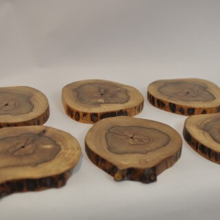 Podstawki z wyrzynków Orzecha włoskiego pod kubek z gorącym napojem. Wypolerowane na gładko i zabezpieczone odpowiednim lakierem przed temperaturą i wilgocią