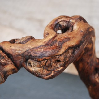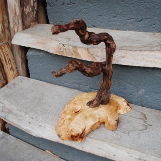 Wieszaki na słuchawki wykonane ze zdrewniałych pędów winogron osadzonych na plastrach robinii, orzecha i czeczoty brzozowej. Szczotkowane, lakier mat