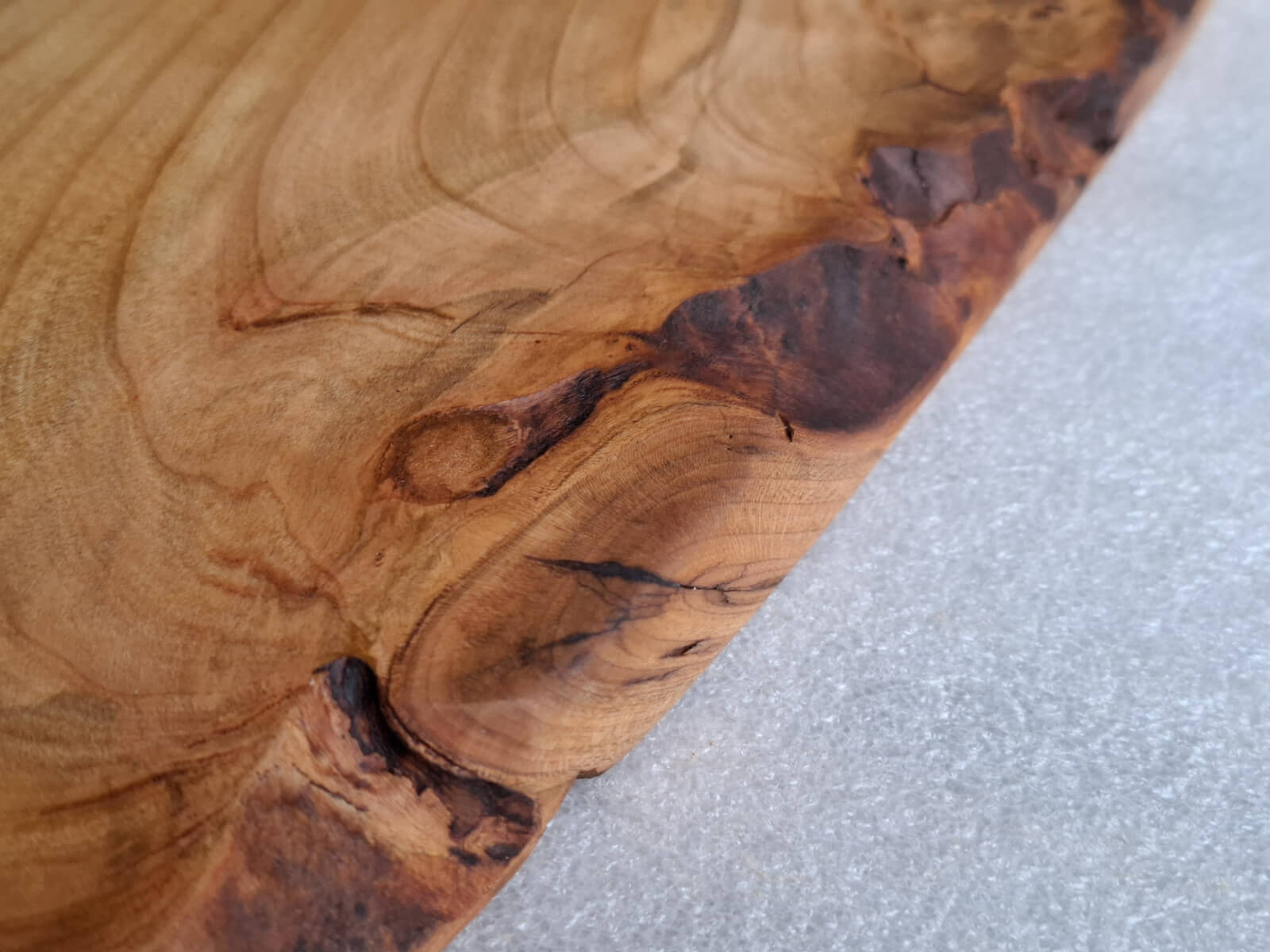 Deska Kuchenna z drewna Czereśni grubości 20 mm, kształt nieregularny, krawędzie szczotkowane, nasączona naturalnym olejem lnianym.