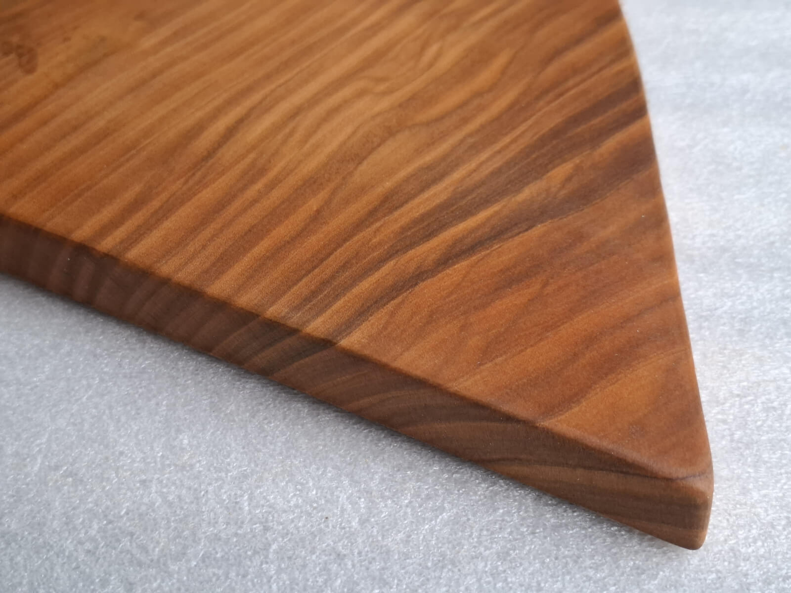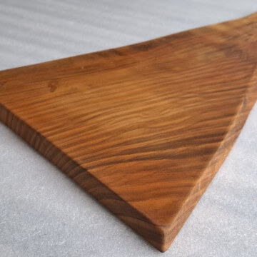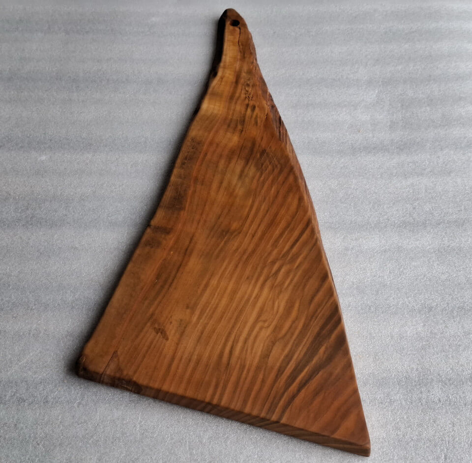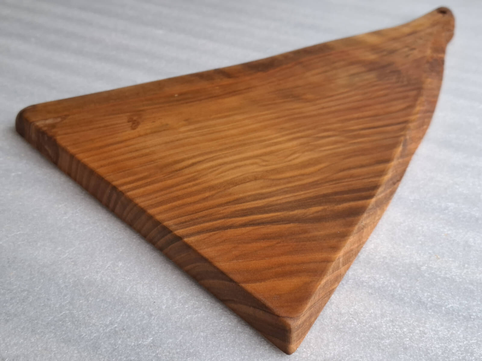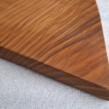 Deska Kuchenna z drewna Czereśni grubości 20 mm, kształt nieregularny trójkątny z rączką, krawędzie szczotkowane, nasączona naturalnym olejem lnianym.