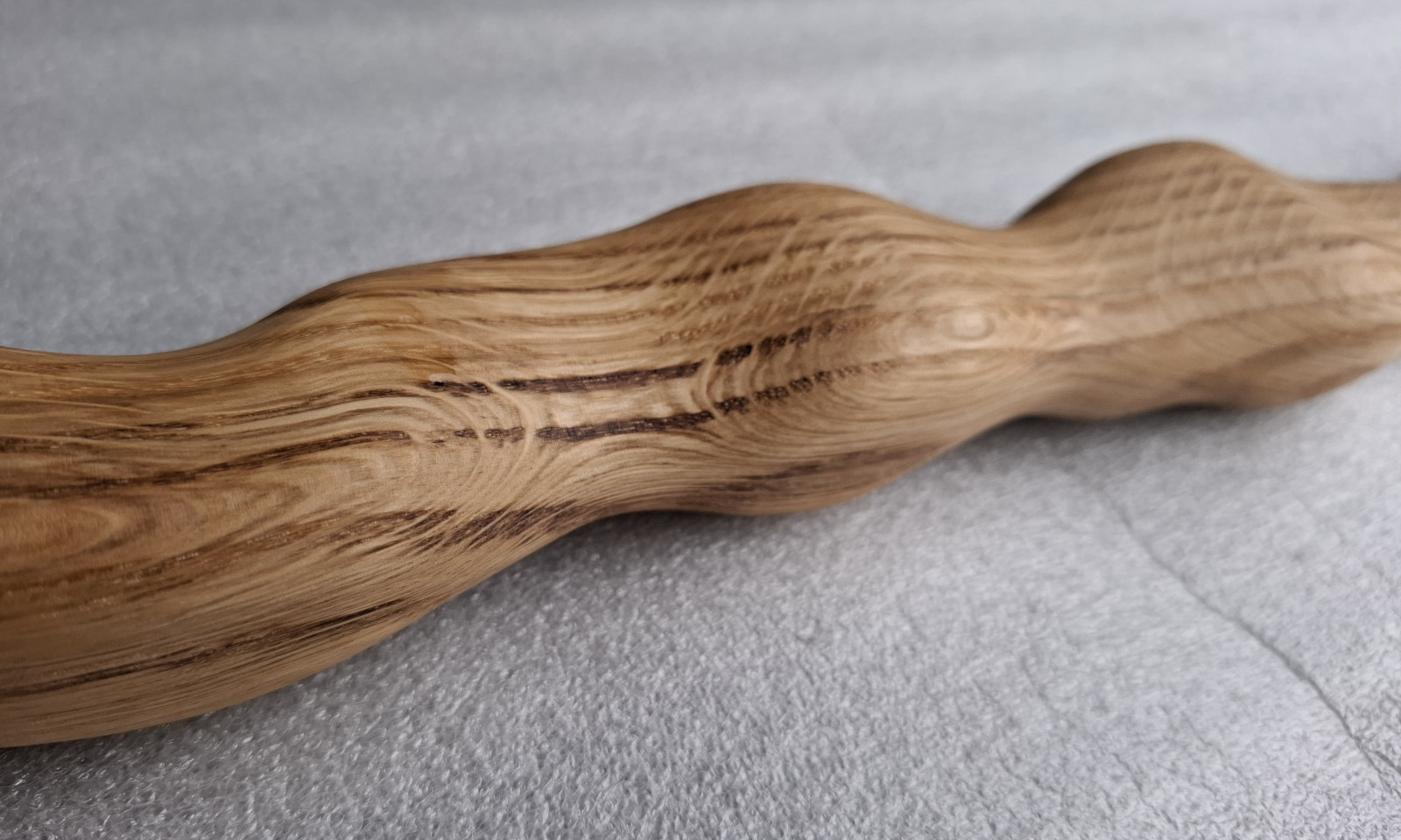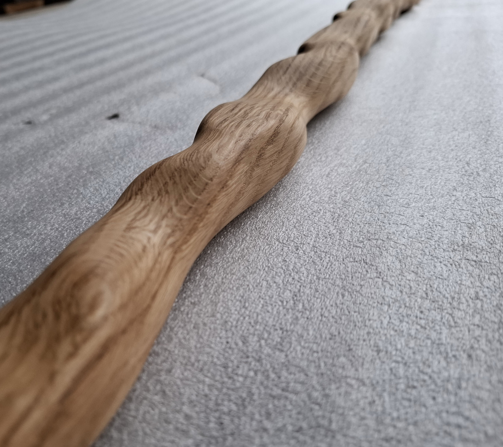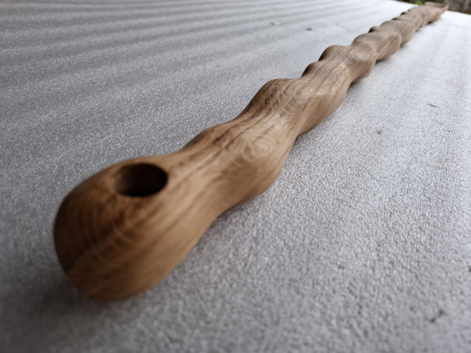 Łyżka rzeźbiona z drewna dębu, długa na 120cm i wąska, nasączona olejem lnianym.