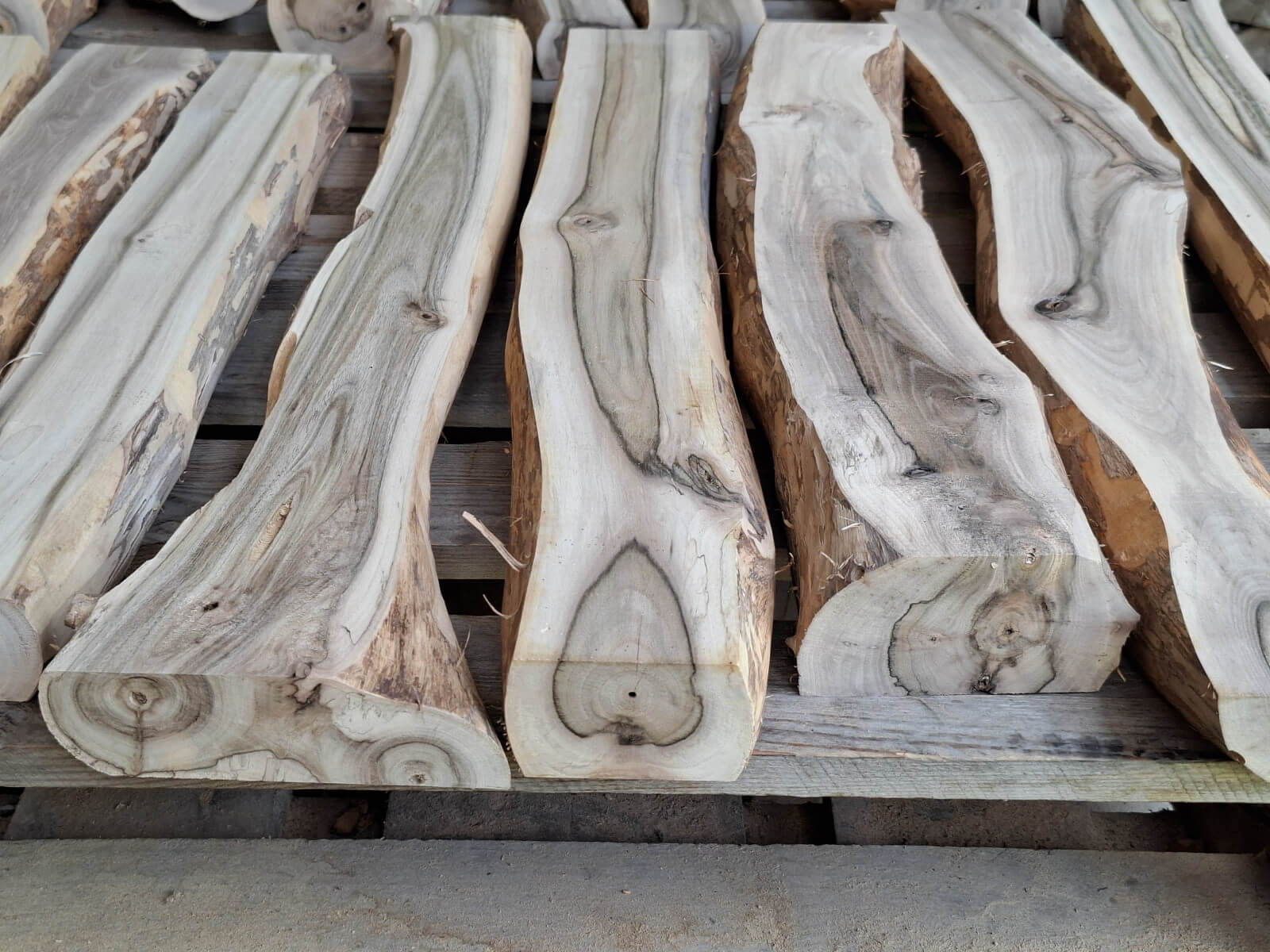 Kantówka z orzecha z naturalnymi krawędziami do projektów DIY.